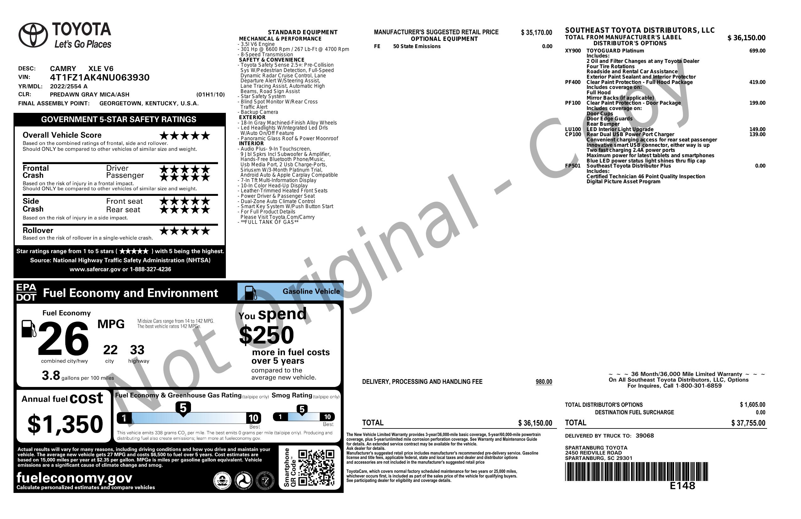 2022 Toyota Camry Xle V6 Auto (Natl)