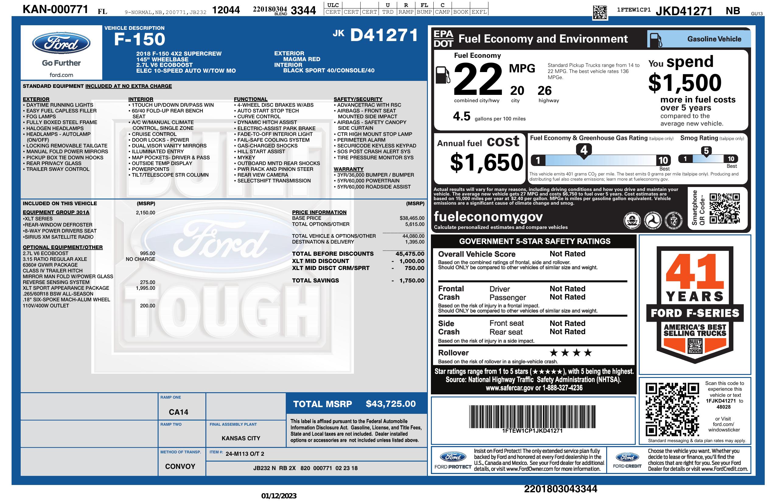 2018 Ford F 150 Xlt 2 Wd Super Crew Box