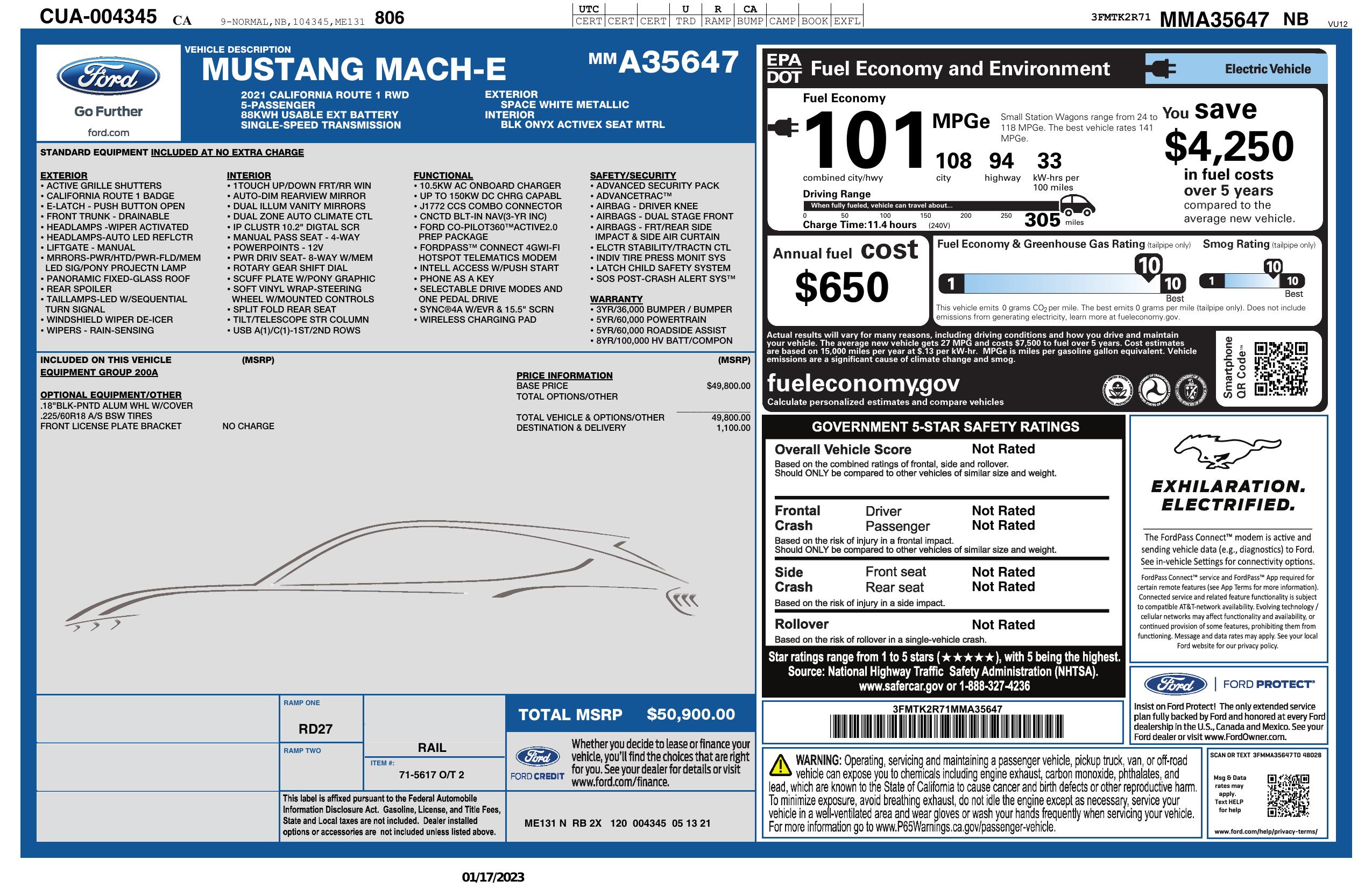 2021 Ford Mustang Mach E California Route 1 Rwd