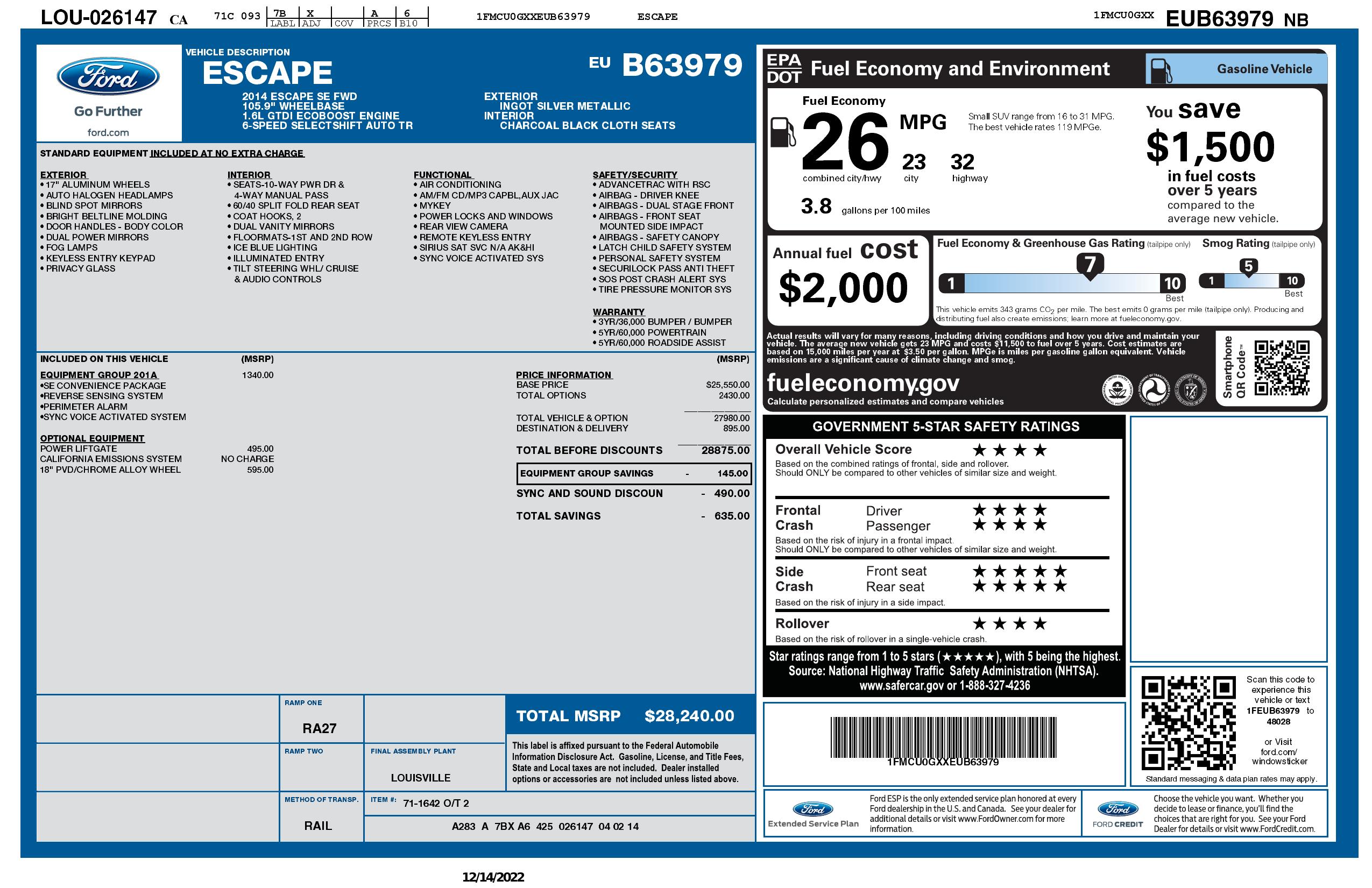 2014 Ford Escape Fwd 4dr Se