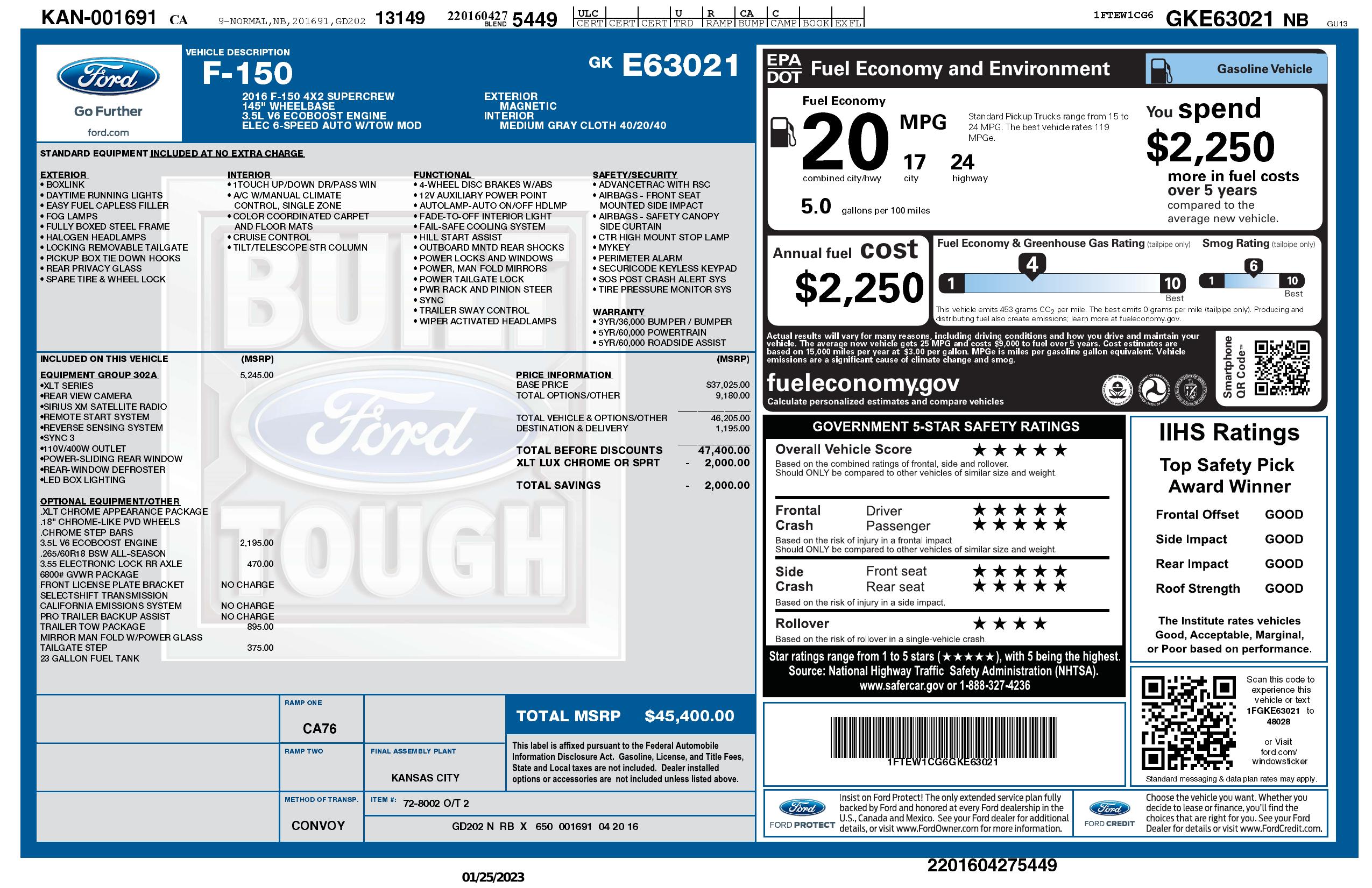 2016 Ford F 150 2 Wd Super Crew Xlt
