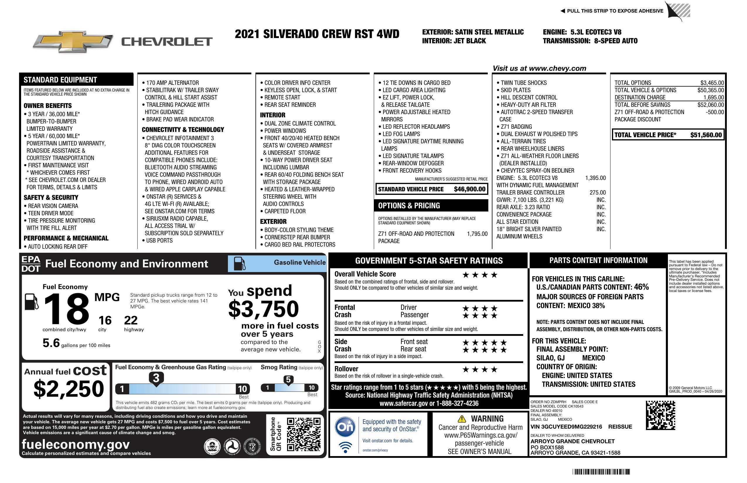 2021 Chevrolet Silverado 1500 4 Wd Crew Cab 147" Rst