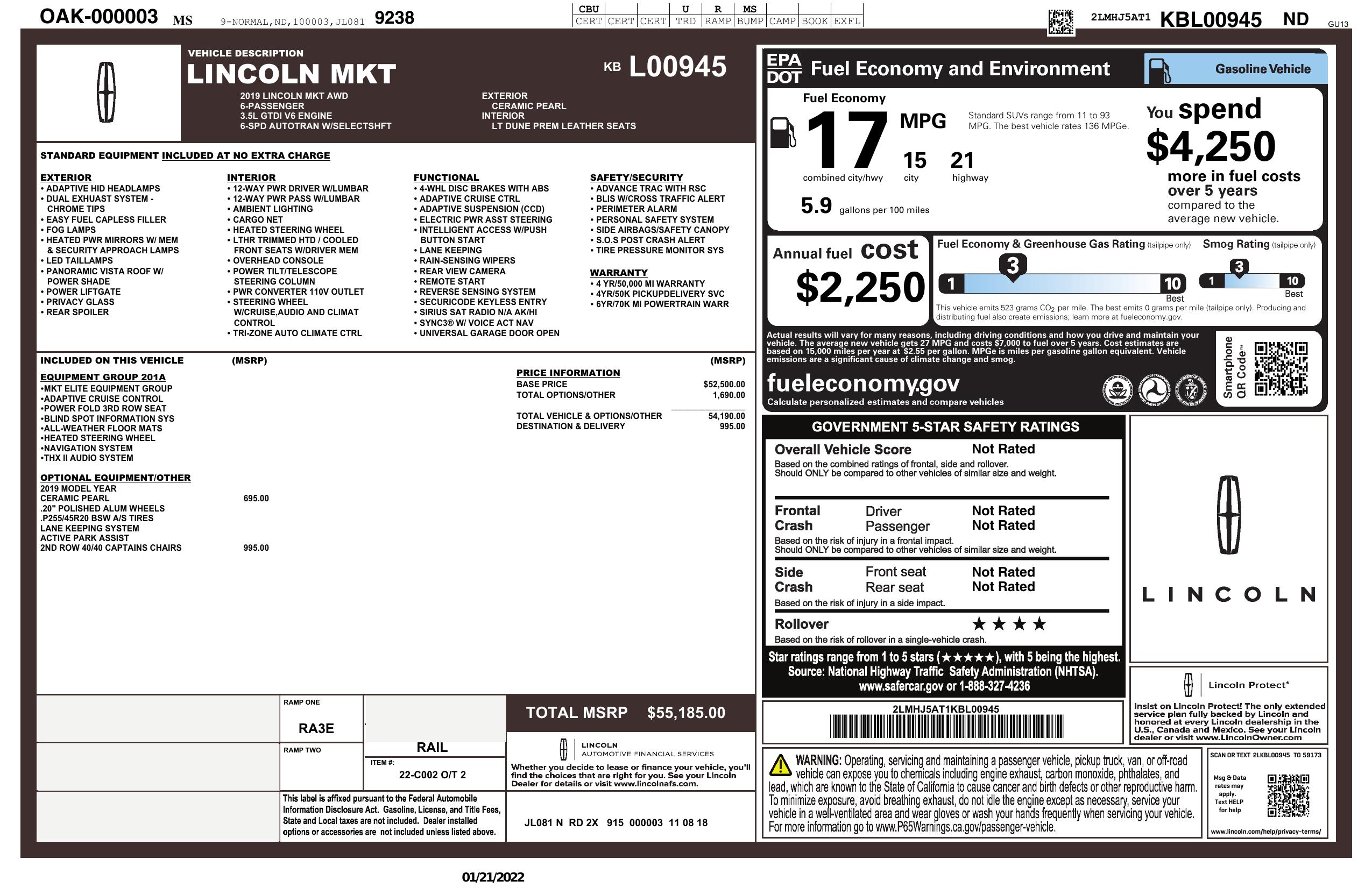 2019 Lincoln Mkt 3.5 L Awd
