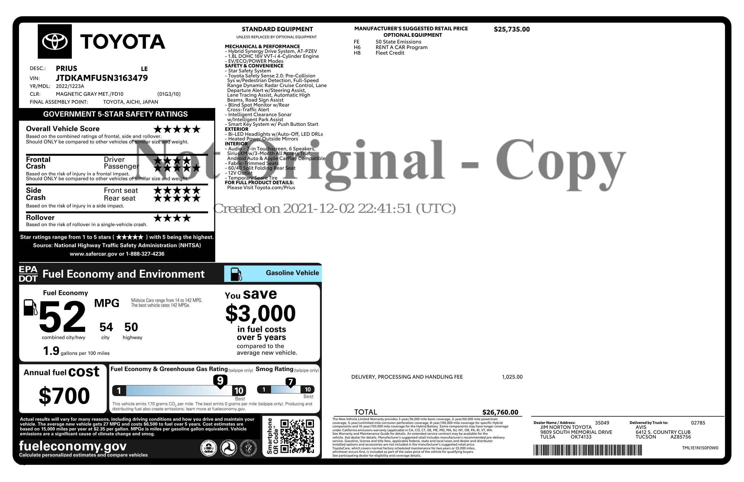 2022 Toyota Prius (Natl)