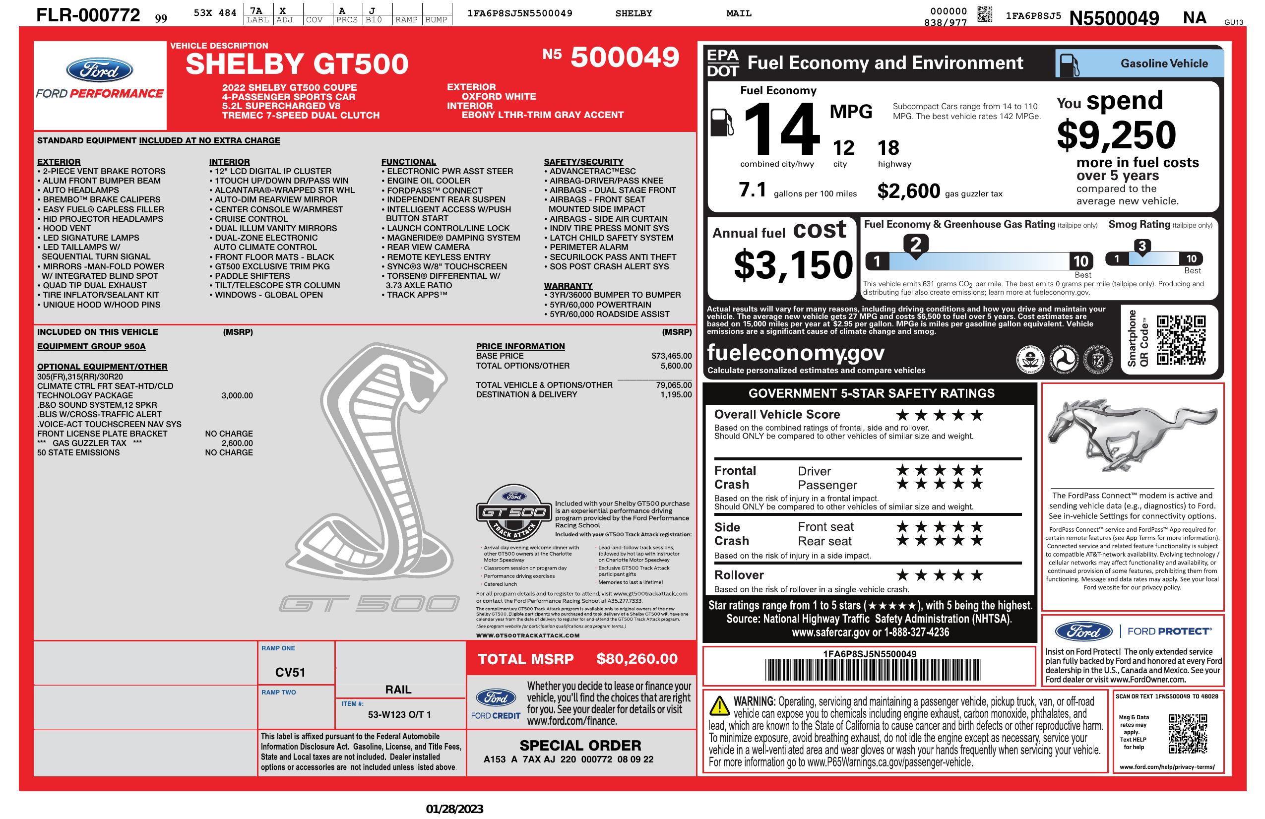 2022 Ford Mustang Shelby Gt500 Fastback