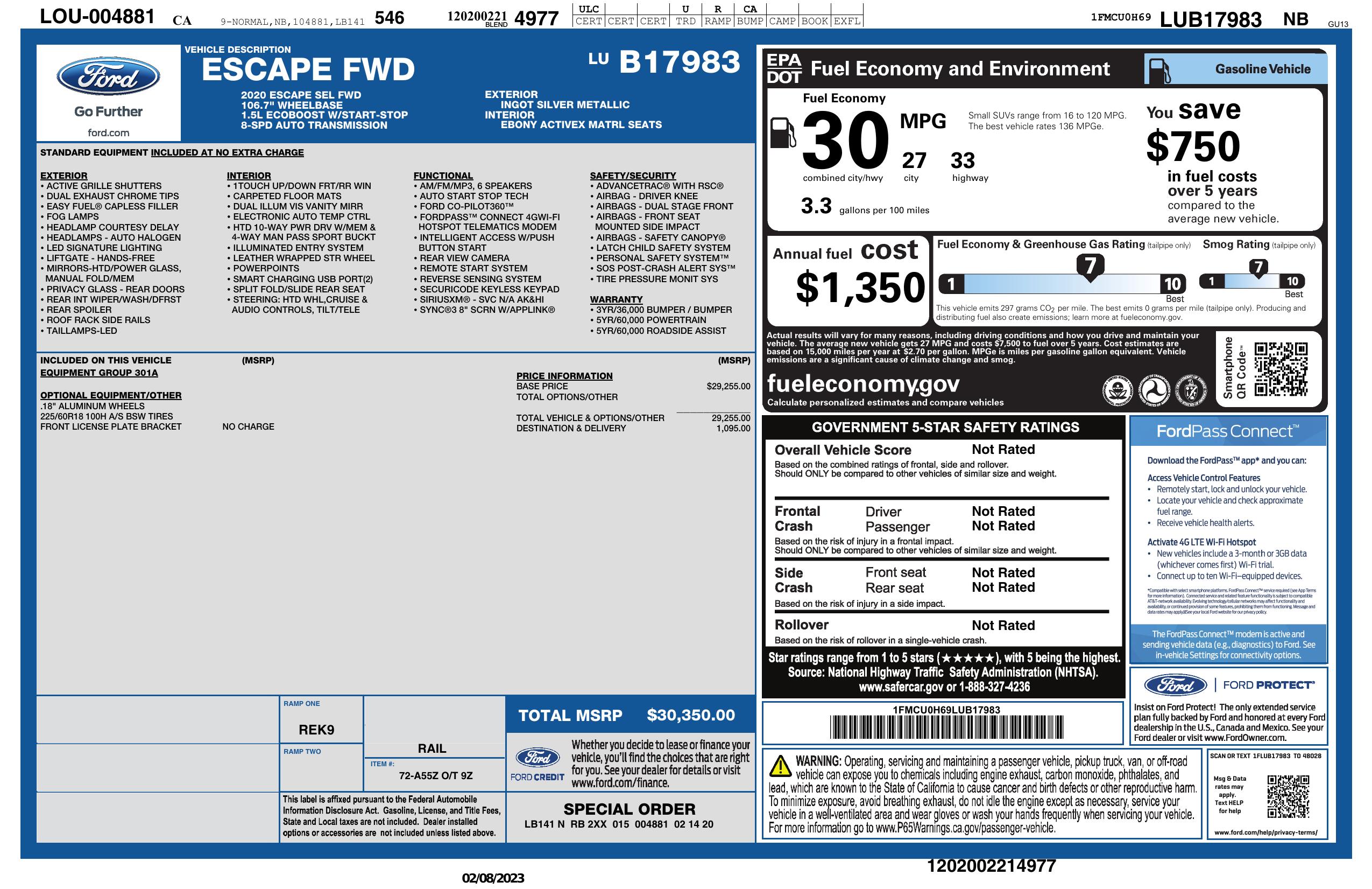 2020 Ford Escape Sel Fwd