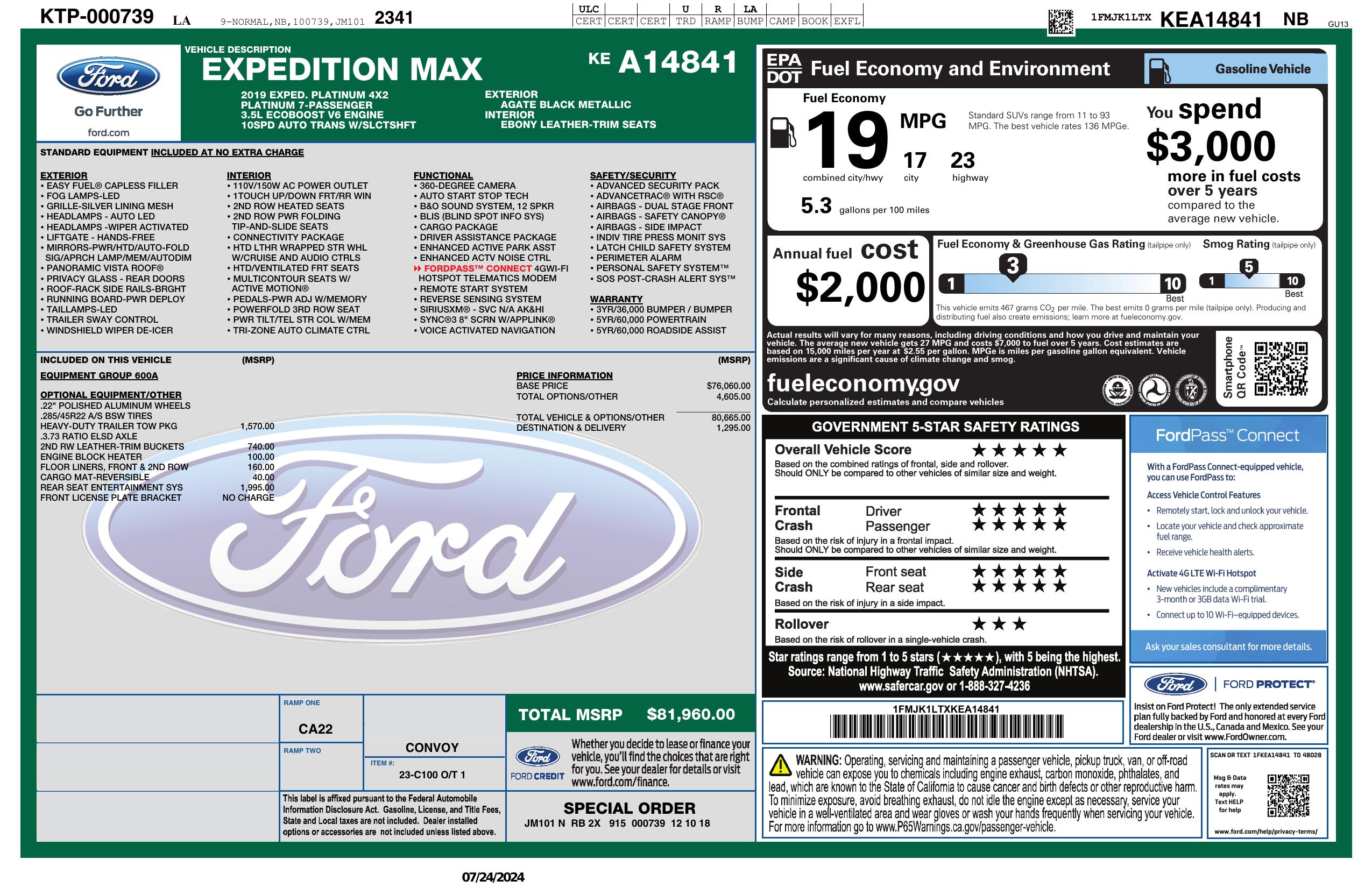 2019 Ford Expedition Max Platinum 4x2