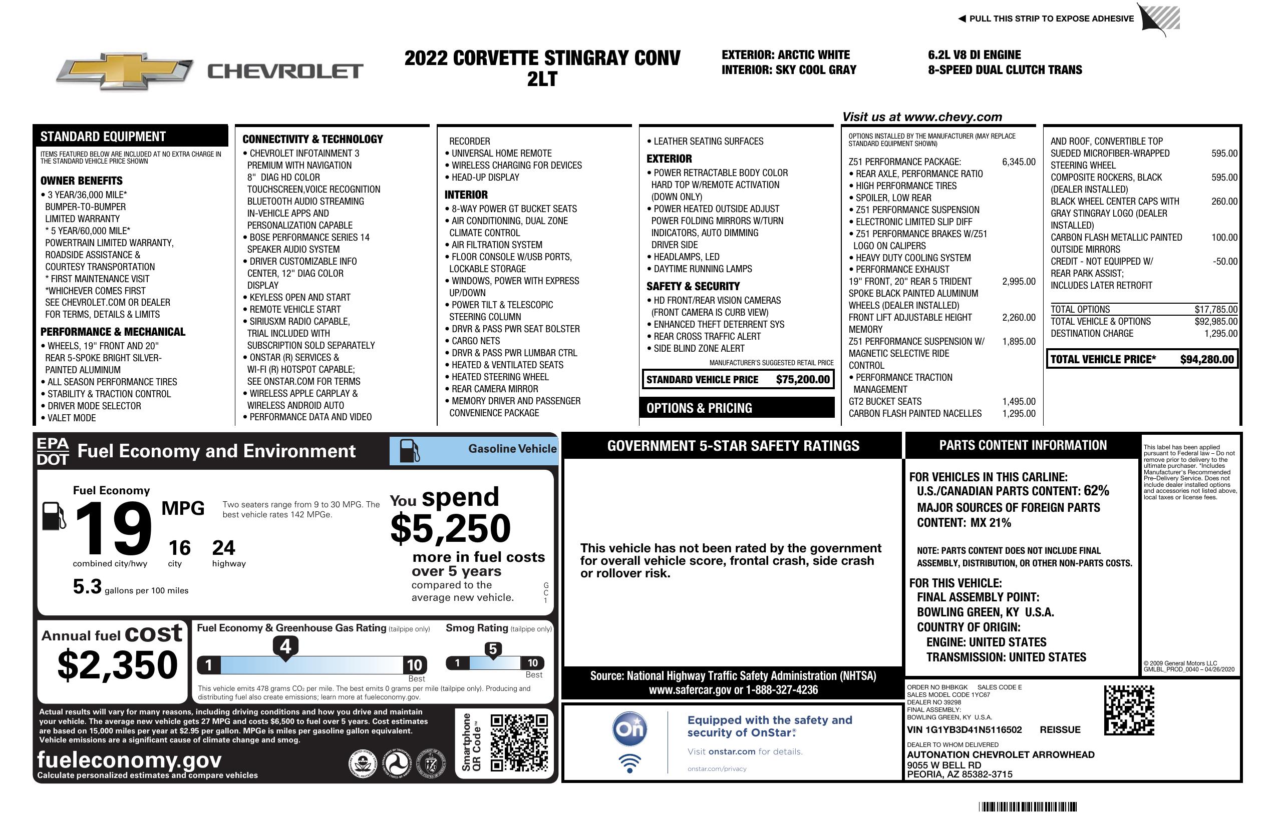 2022 Chevrolet Corvette 2dr Stingray Conv W/2 Lt