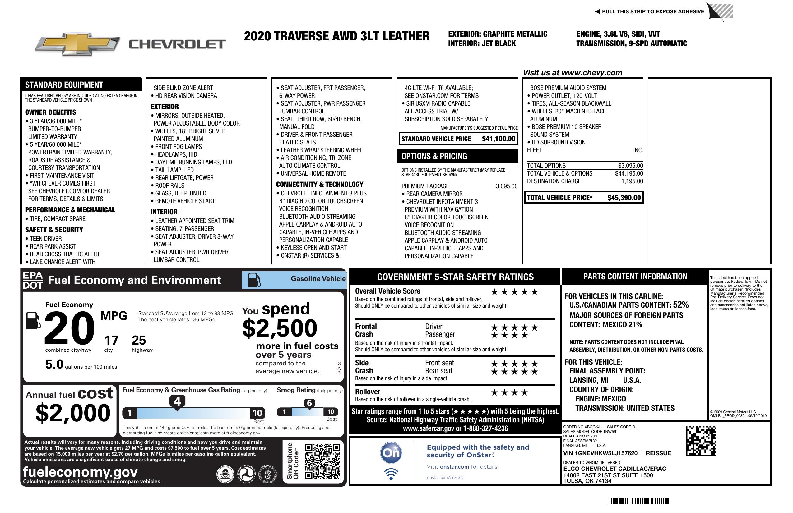 2020 Chevrolet Traverse Awd 4dr Lt Leather