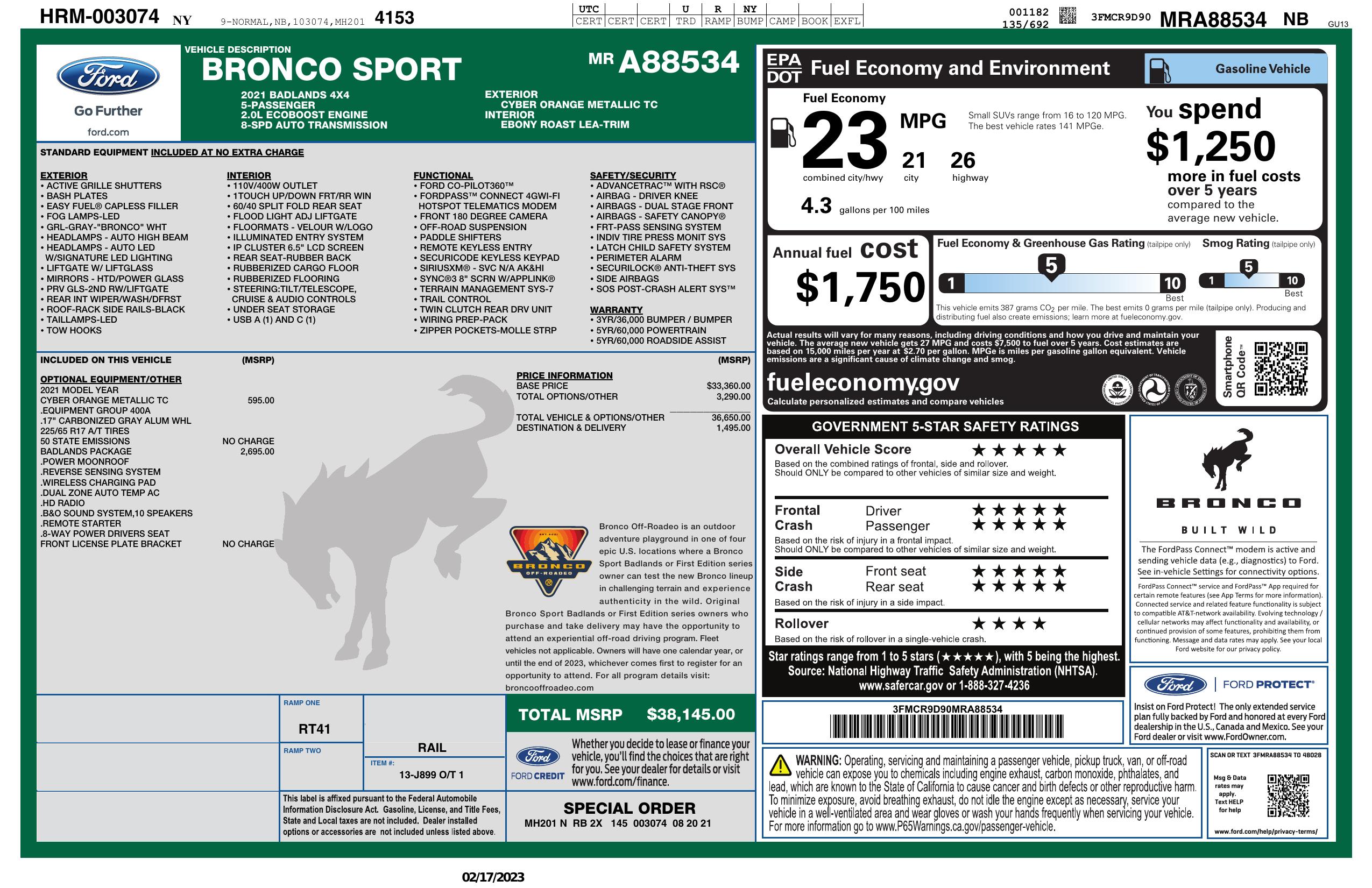 2021 Ford Bronco Sport Badlands 4x4 *Ltd Avail*