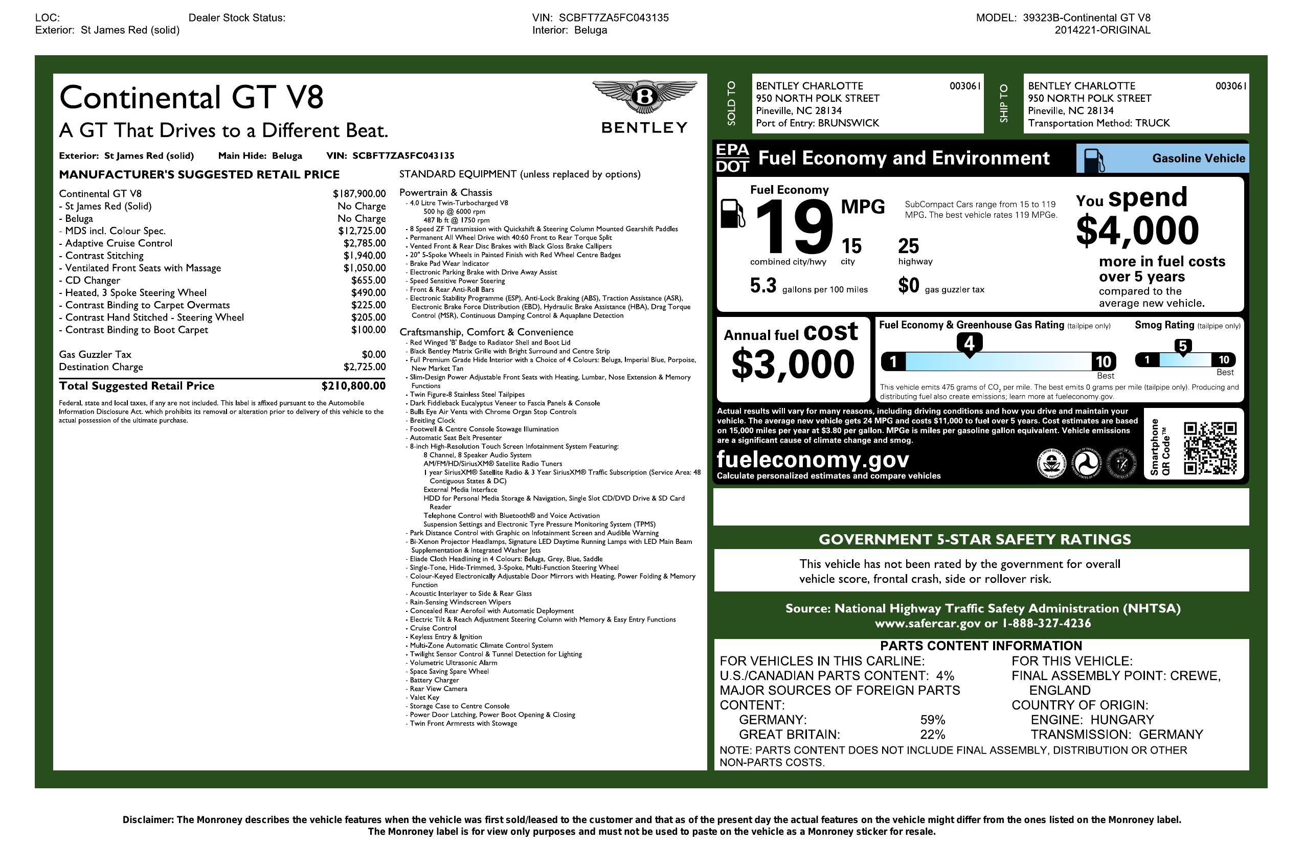 2015 Bentley Continental Gt V8 2dr Cpe