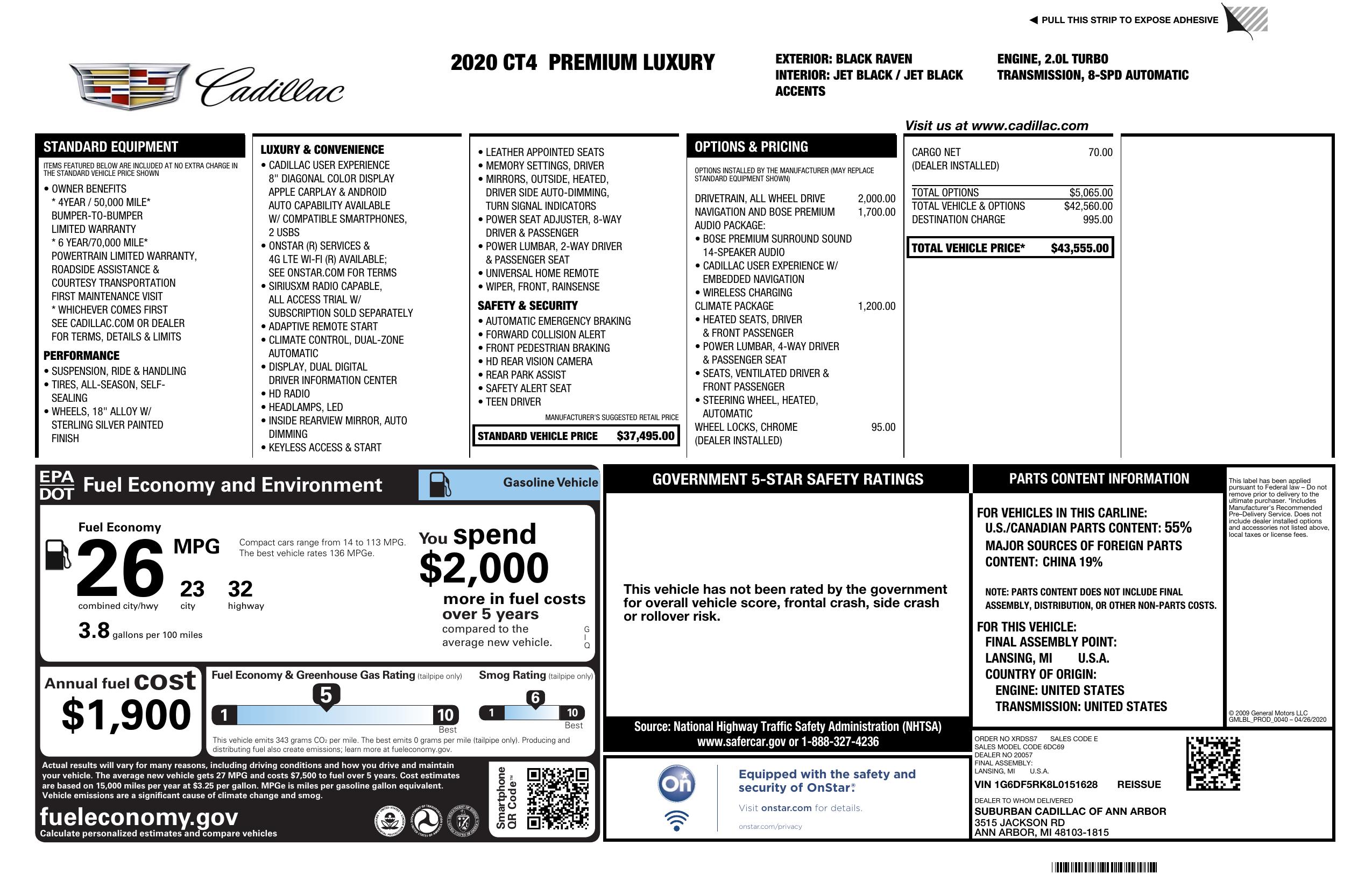 2020 Cadillac Ct4 4dr Sdn Premium Luxury