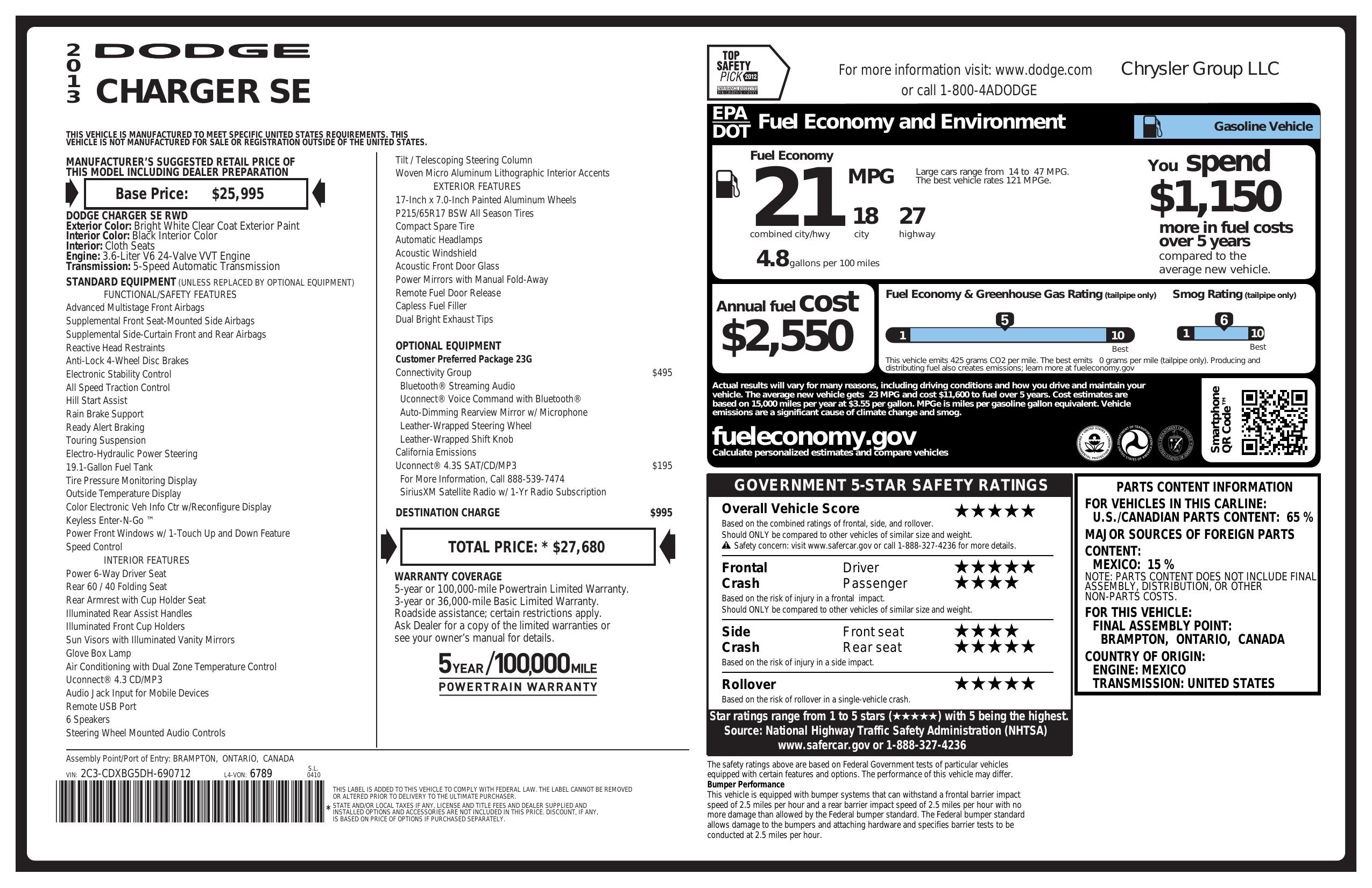 2013 Dodge Charger 4dr Sdn Se Rwd