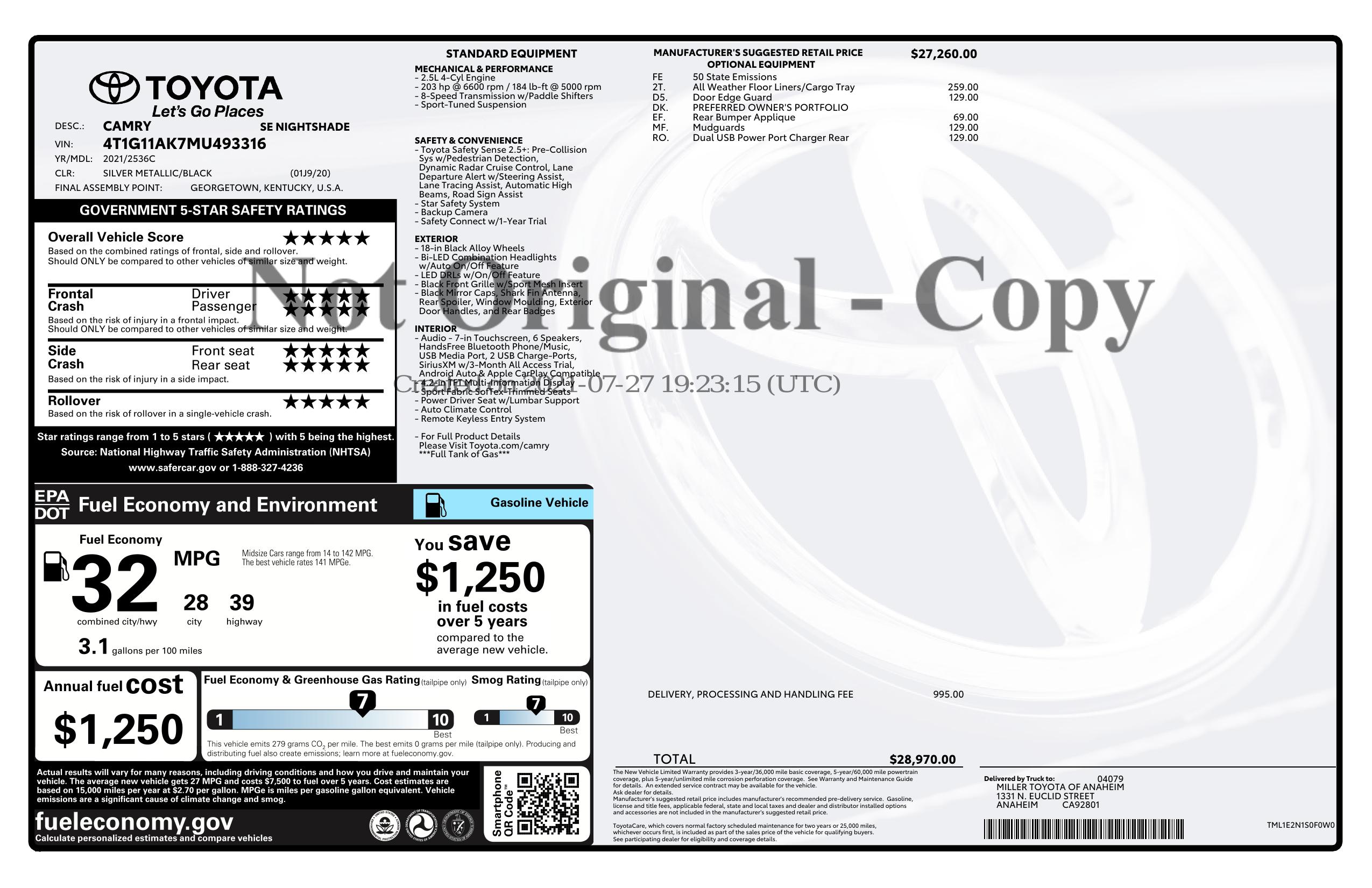 2021 Toyota Camry Se Auto (Natl)