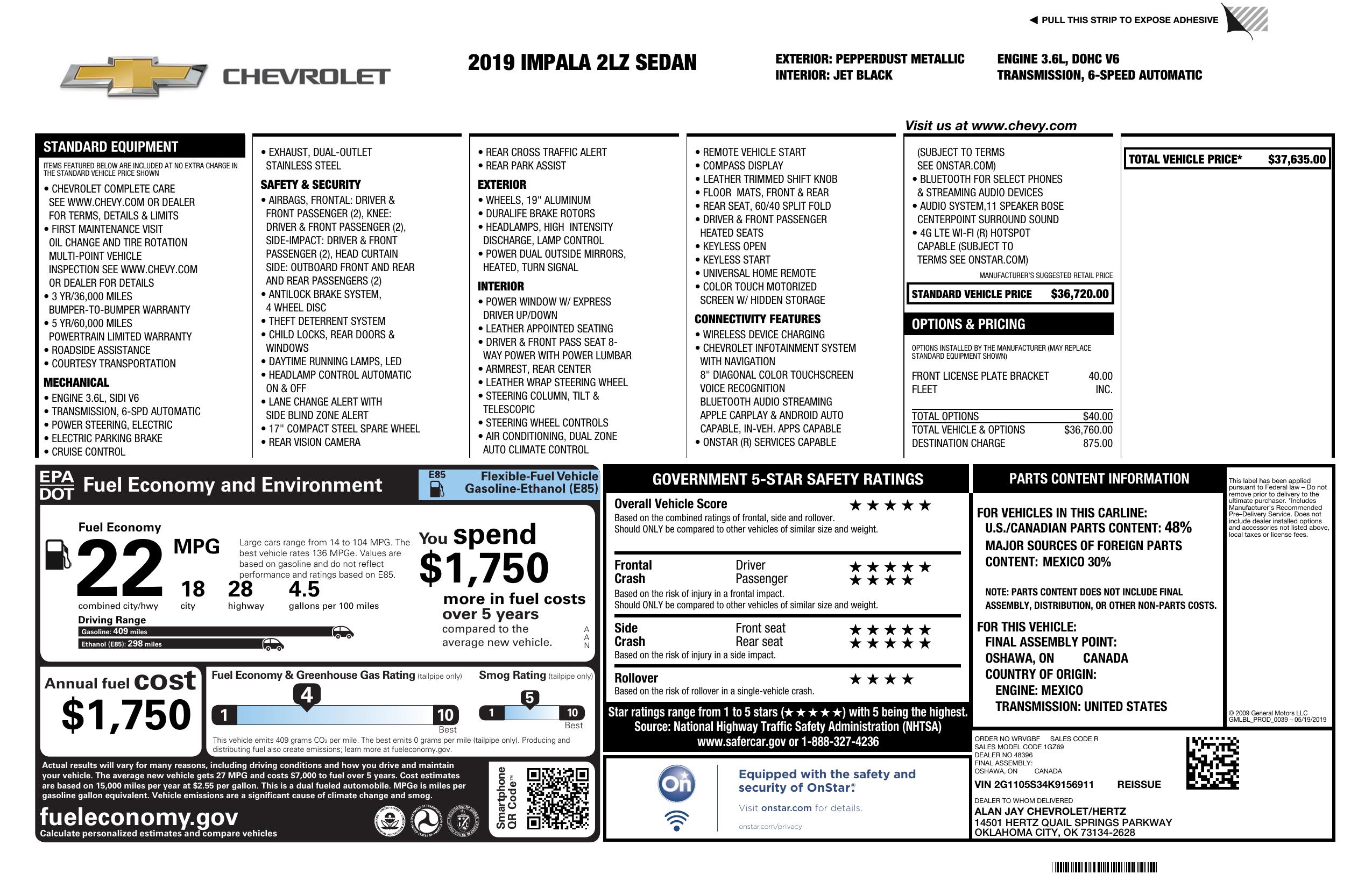 2019 Chevrolet Impala 4dr Sdn Premier W/2 Lz