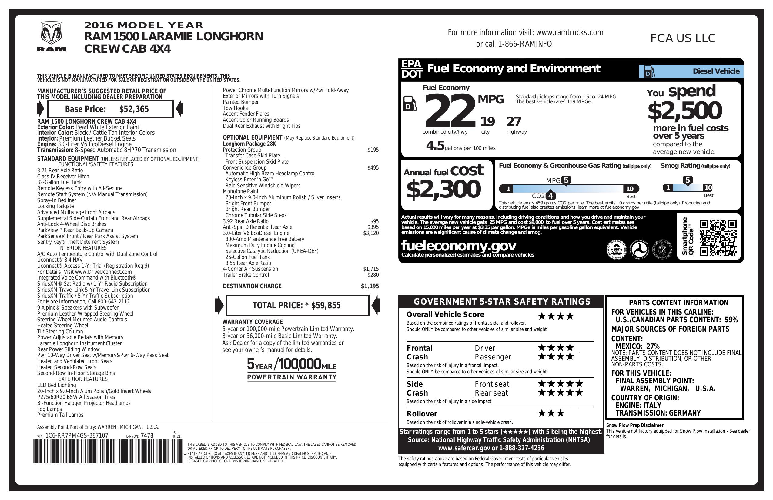2016 Ram 1500 4 Wd Crew Cab 140.5" Longhorn