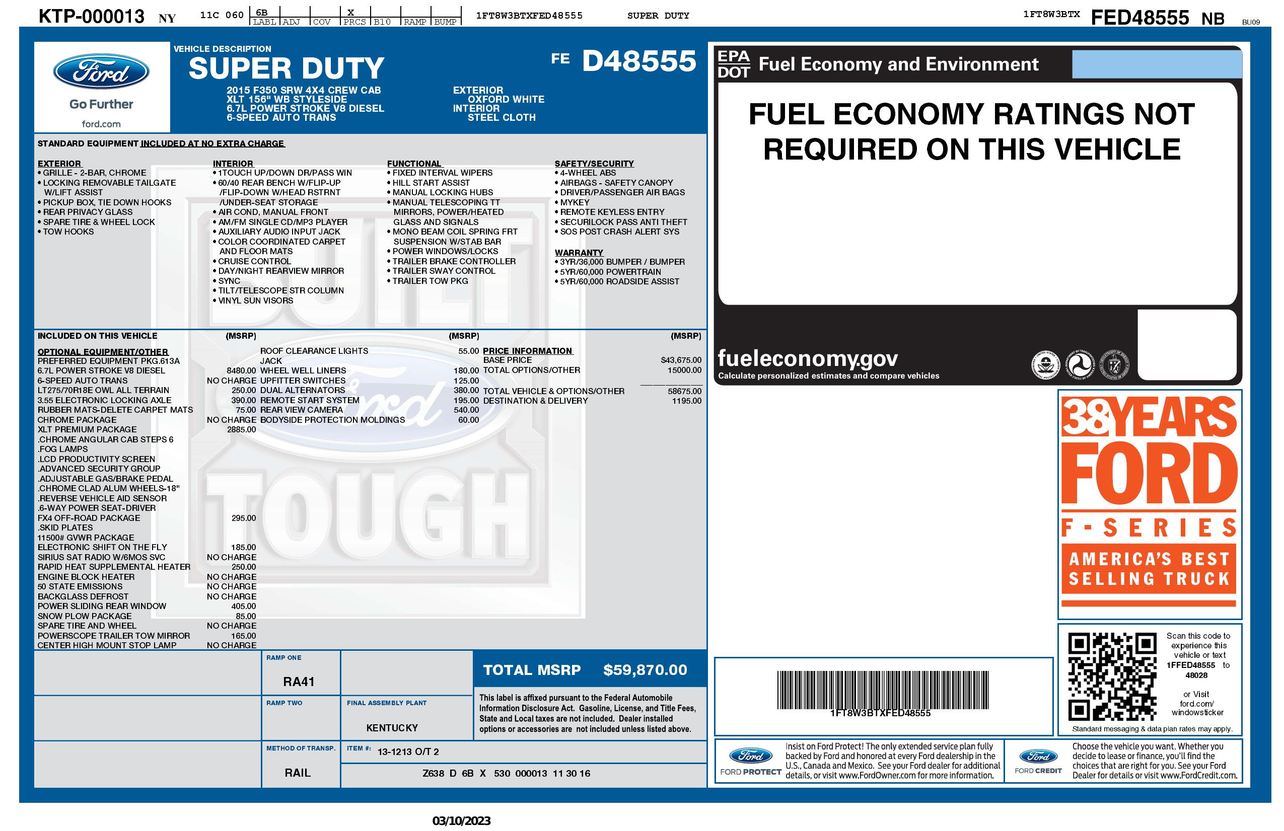 2015 Ford Super Duty F 350 Srw 4 Wd Crew Cab