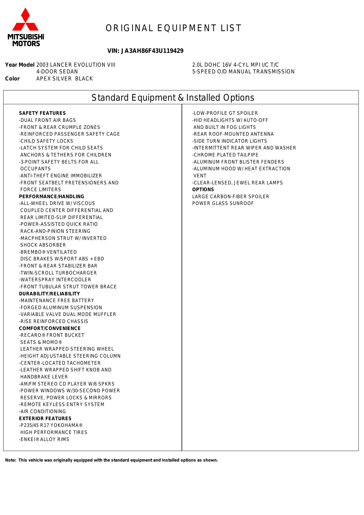 2003 Mitsubishi Lancer 4dr Sdn Evolution Manual