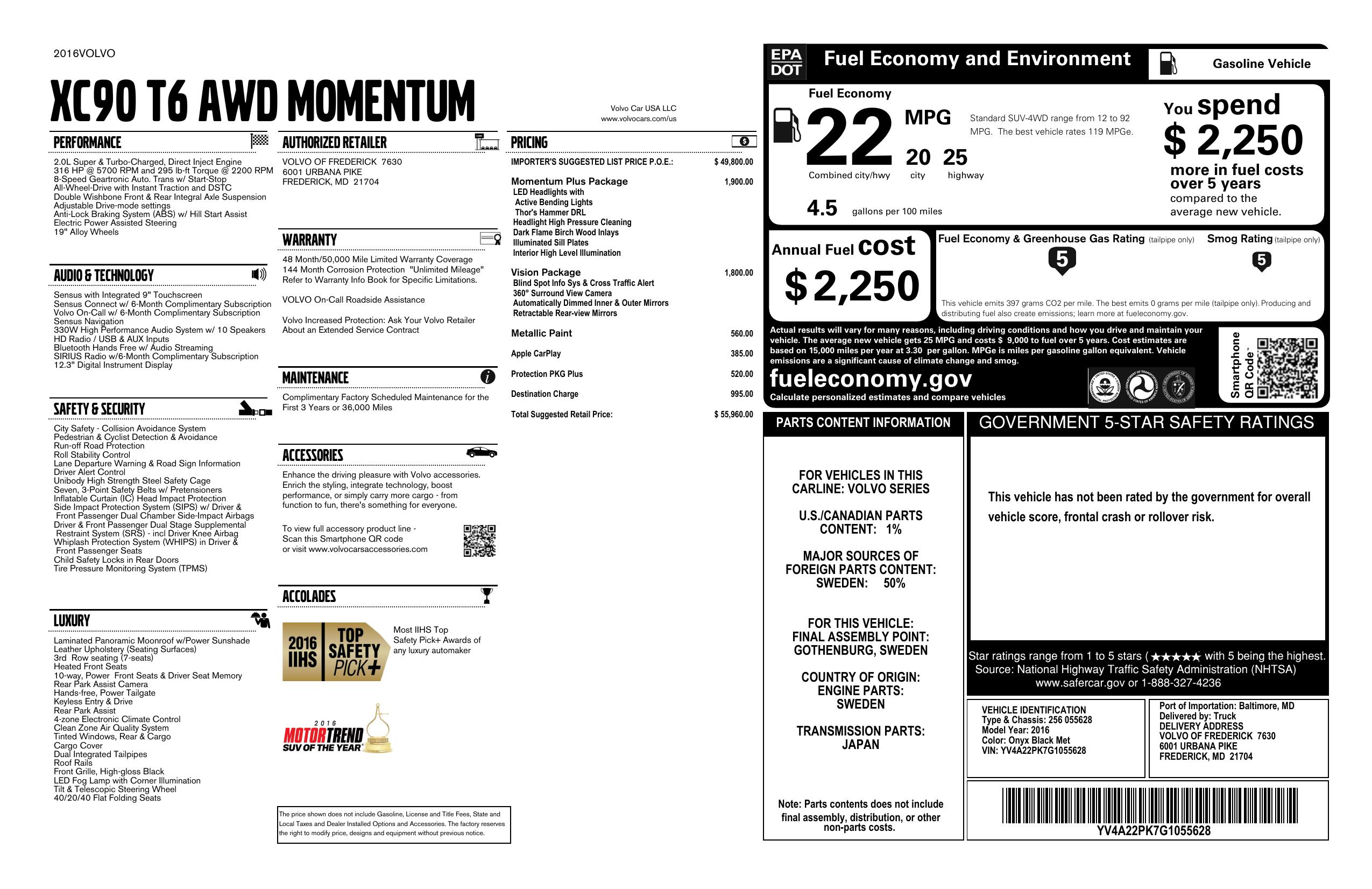 2016 Volvo Xc90 T6 Momentum