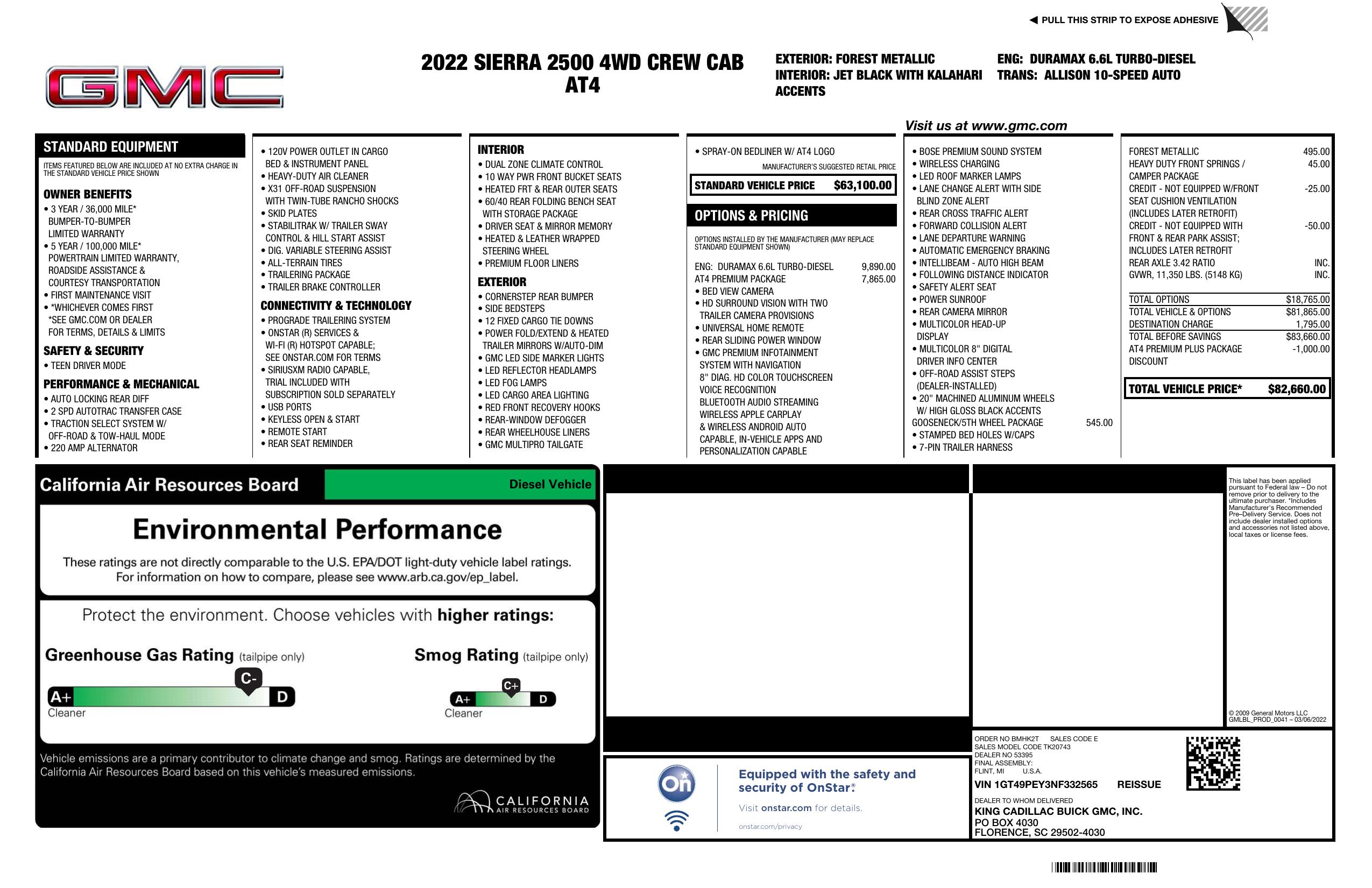 2022 GMC Sierra 2500 Hd 4 Wd Crew Cab 159" At4