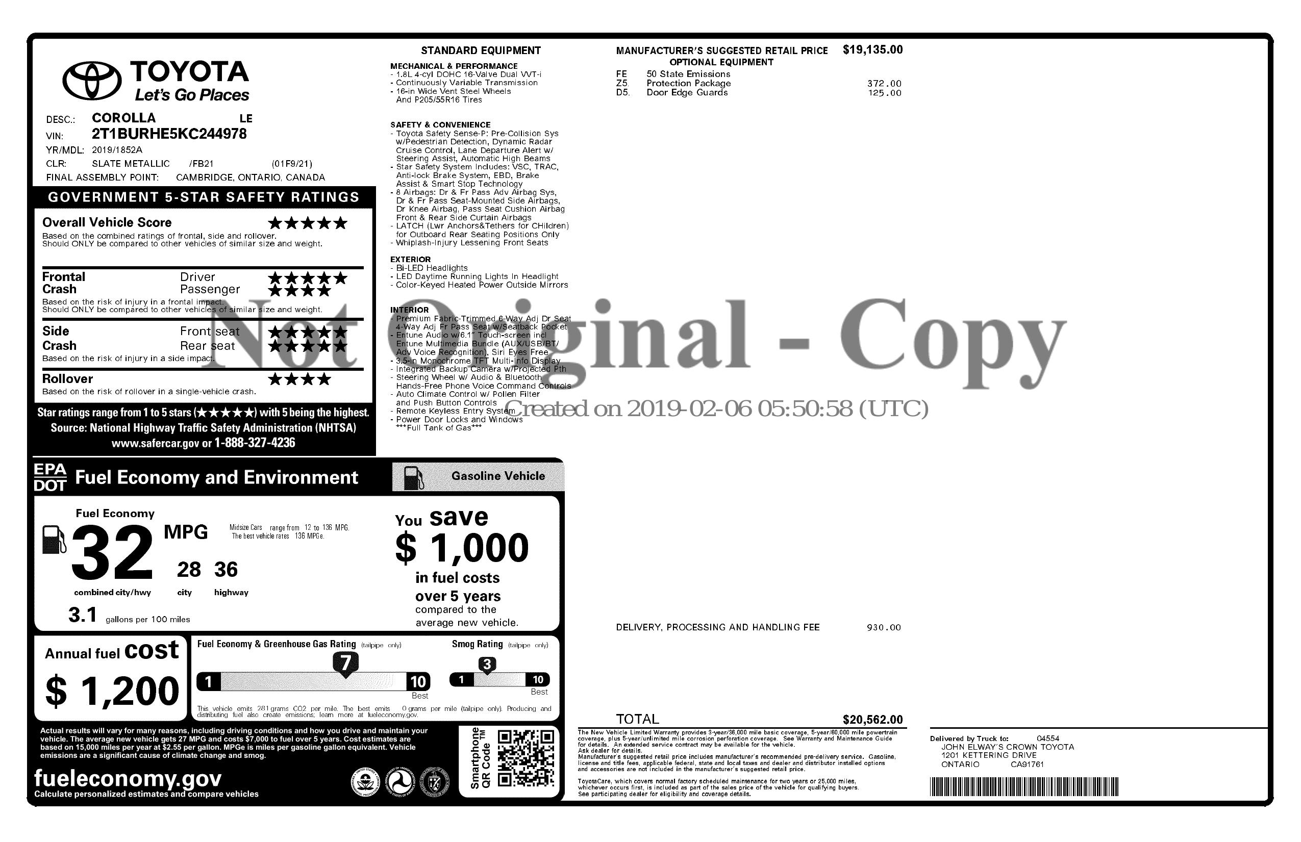 2019 Toyota Corolla (Natl)