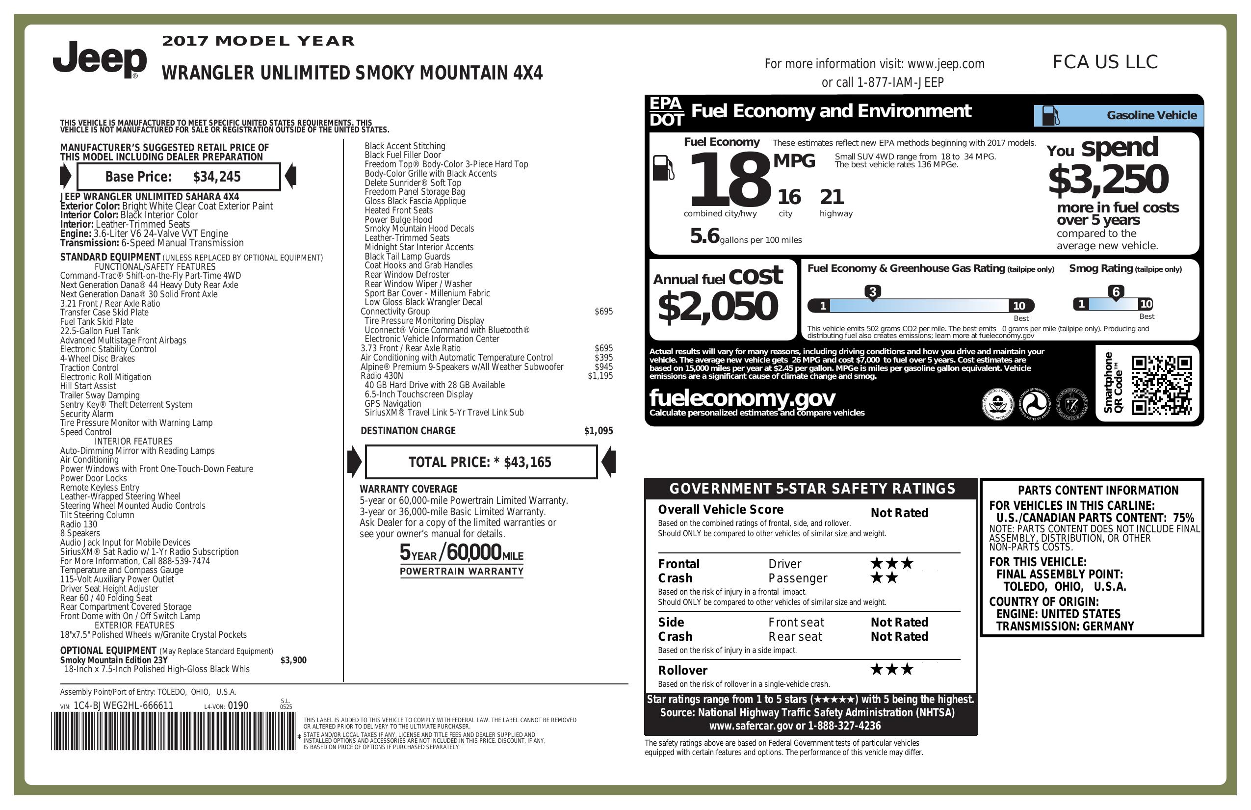 2017 Jeep Wrangler Unlimited Smoky Mountain 4x4 *Ltd Avail*