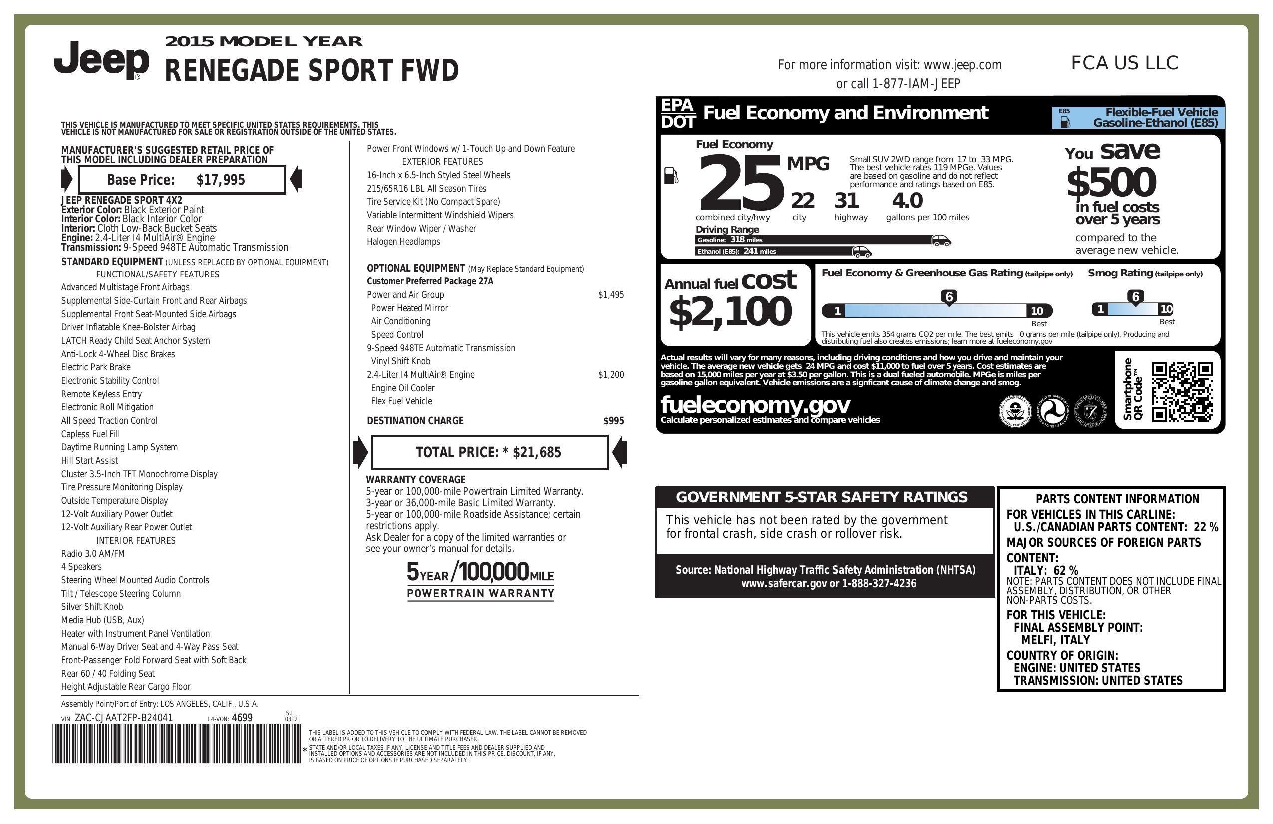 2015 Jeep Renegade Sport Fwd