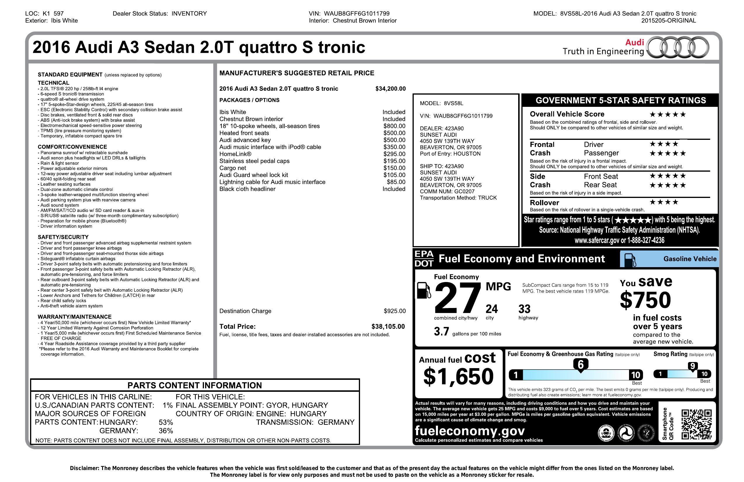 2016 Audi A3 4dr Sdn Quattro 2.0 T Premium