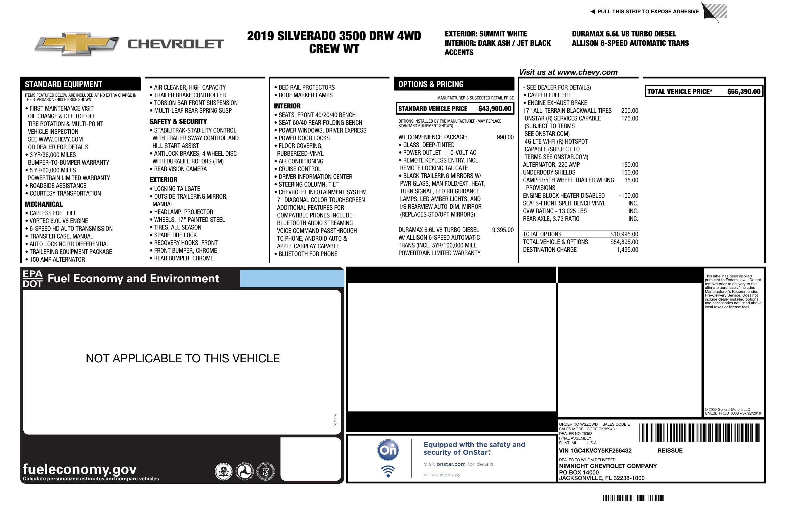 2019 Chevrolet Silverado 3500 Hd 4 Wd Crew Cab 167.7" Work Truck
