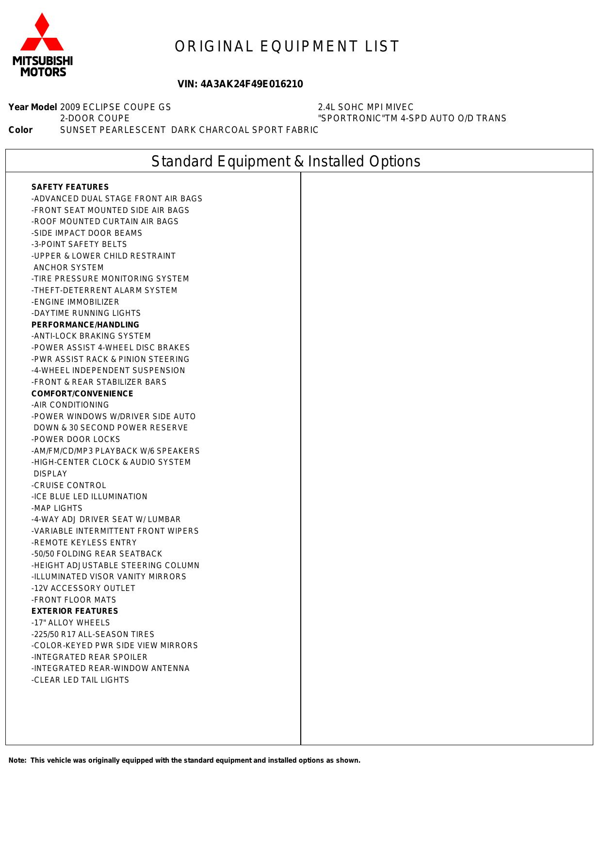2009 Mitsubishi Eclipse 3dr Cpe Gs