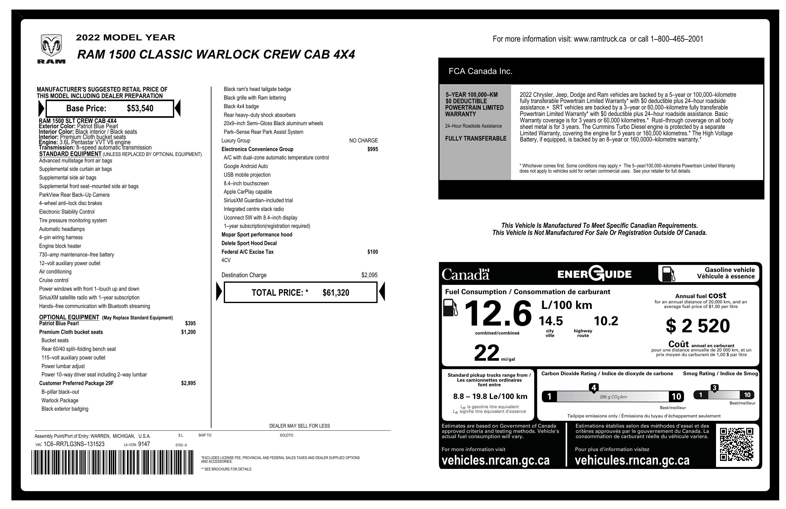 2022 Ram 1500 Classic Warlock 4x4 Crew Cab 5'7" Box