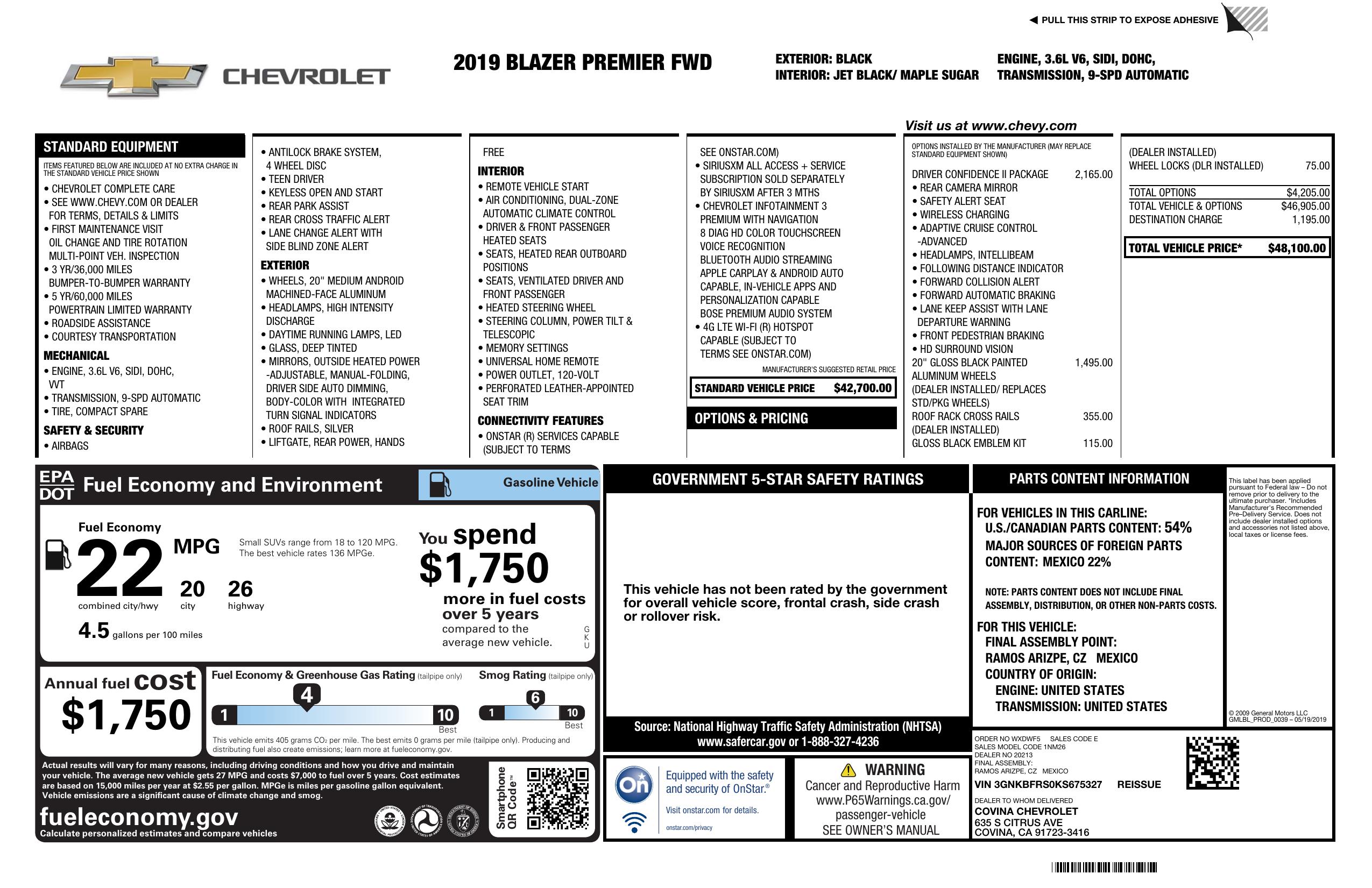 2019 Chevrolet Blazer Fwd 4dr Premier