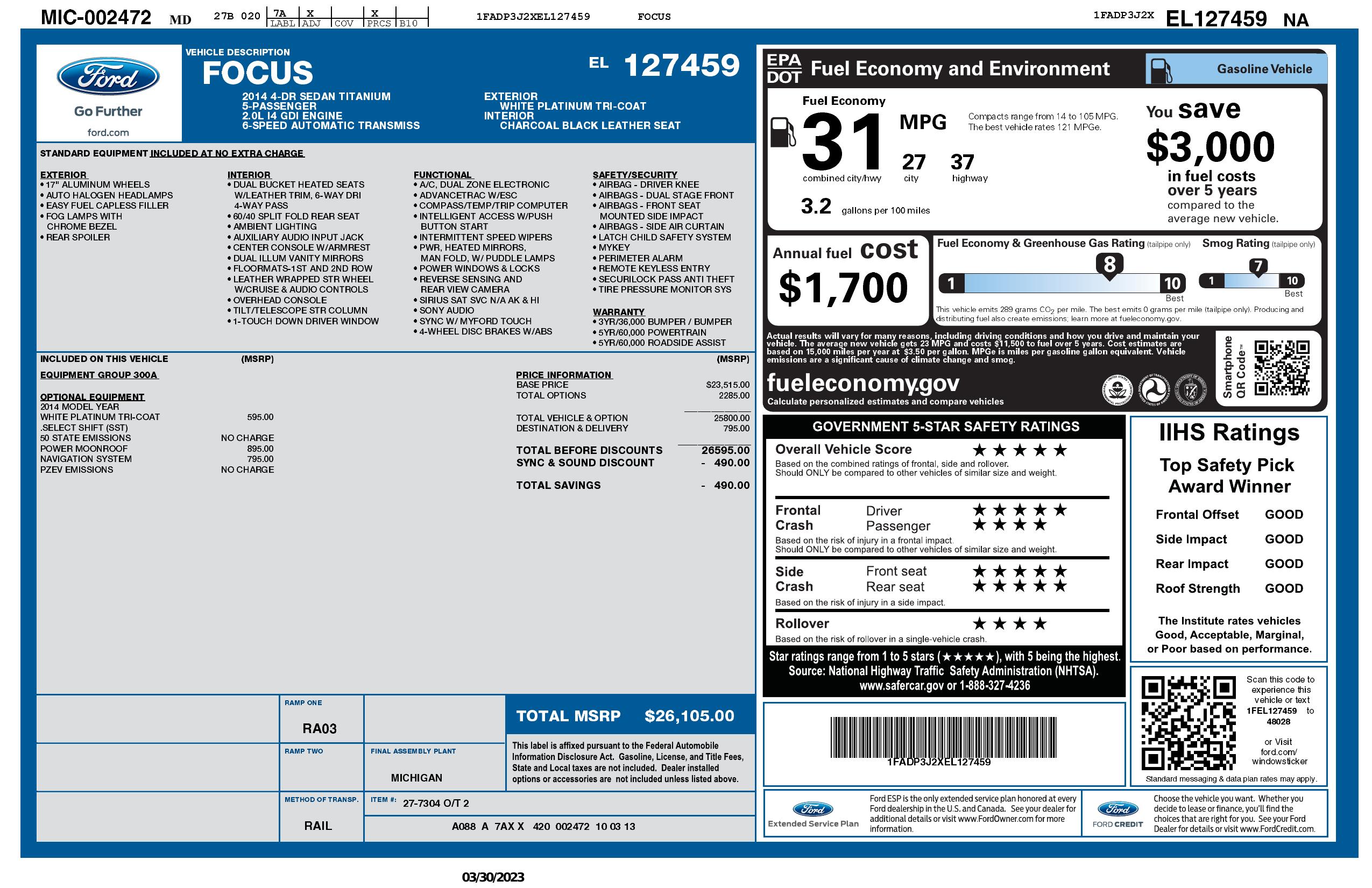 2014 Ford Focus 4dr Sdn Titanium