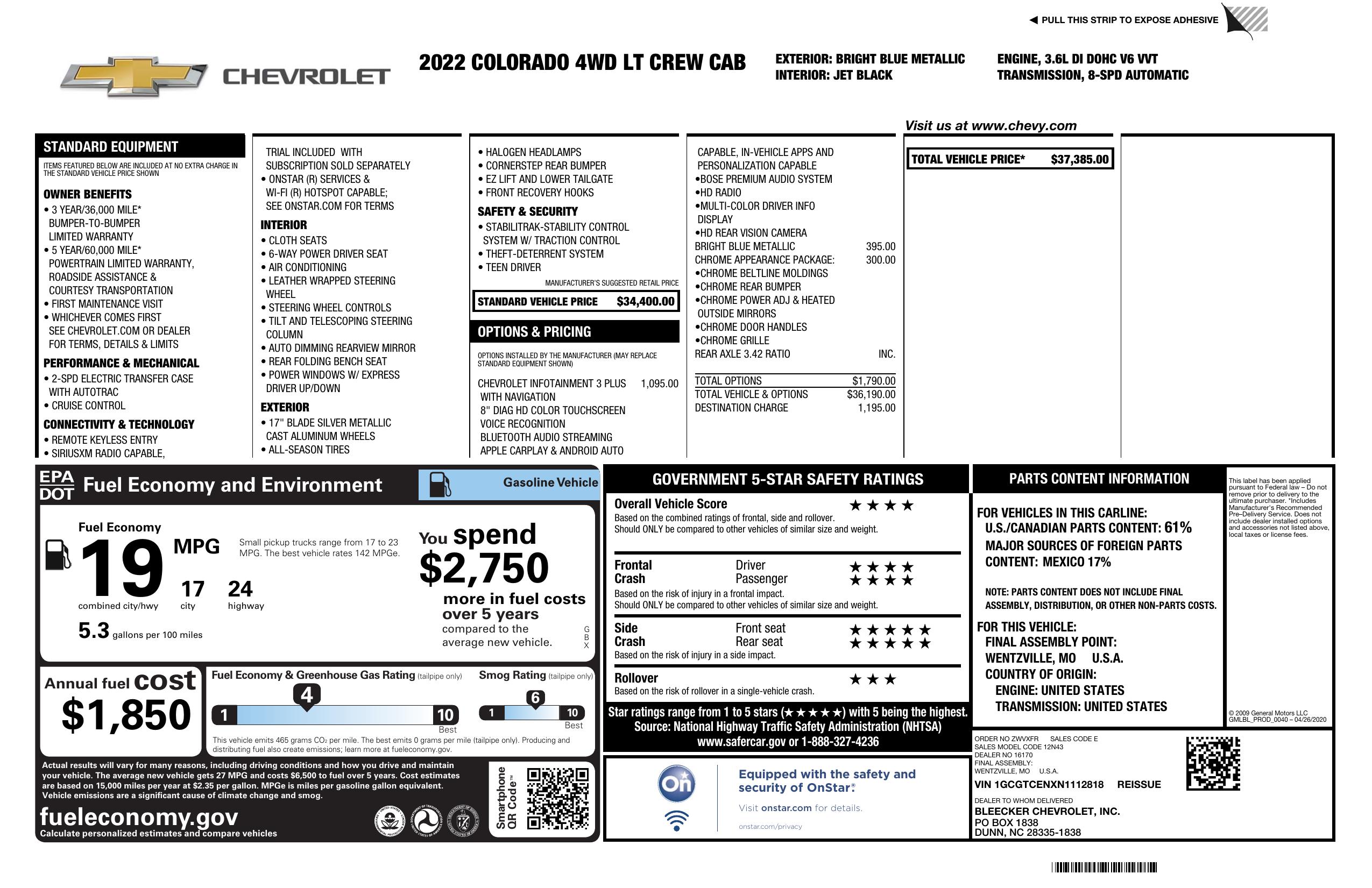 2022 Chevrolet Colorado 4 Wd Crew Cab 128" Lt