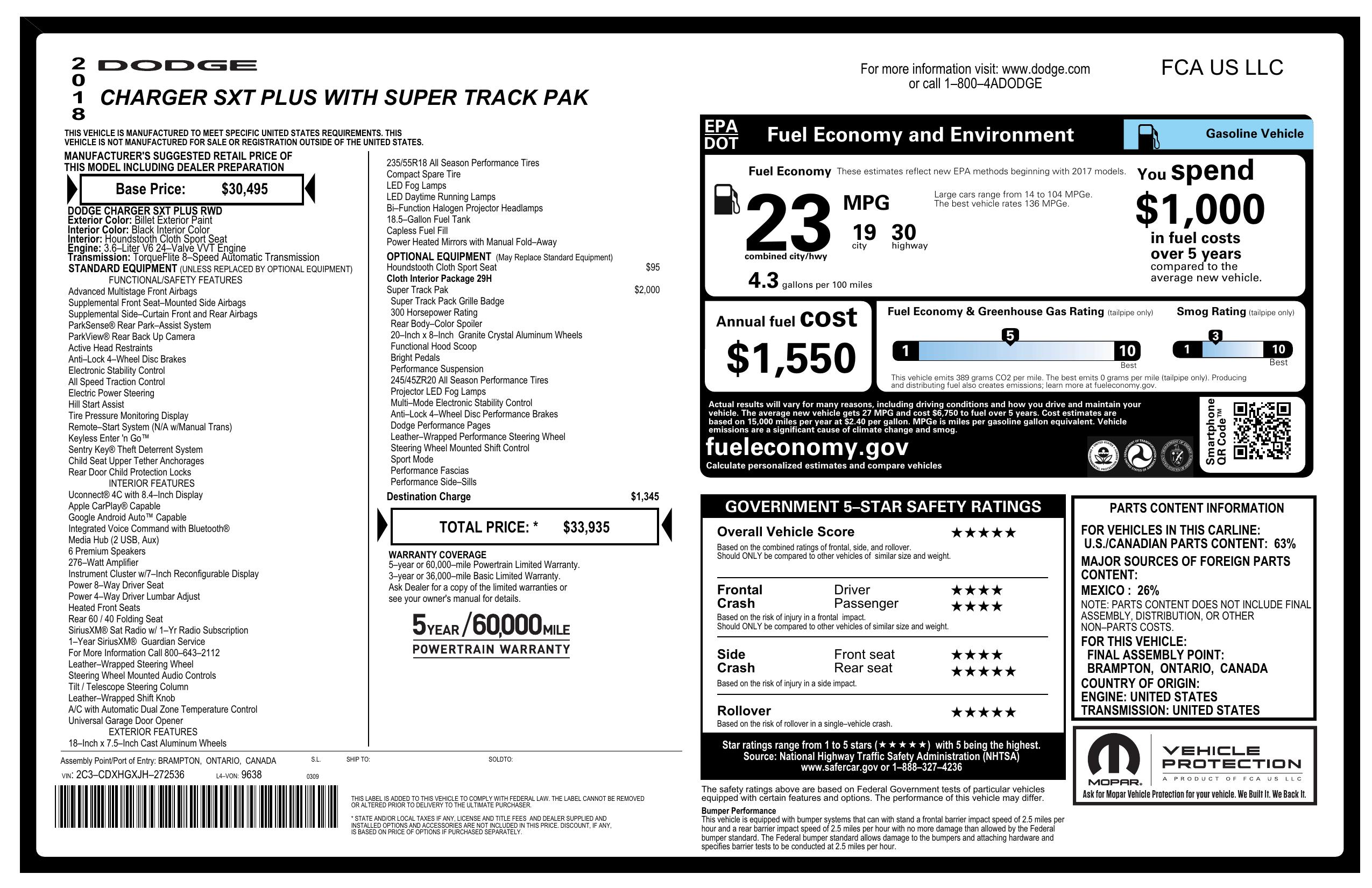2018 Dodge Charger Sxt Plus Rwd