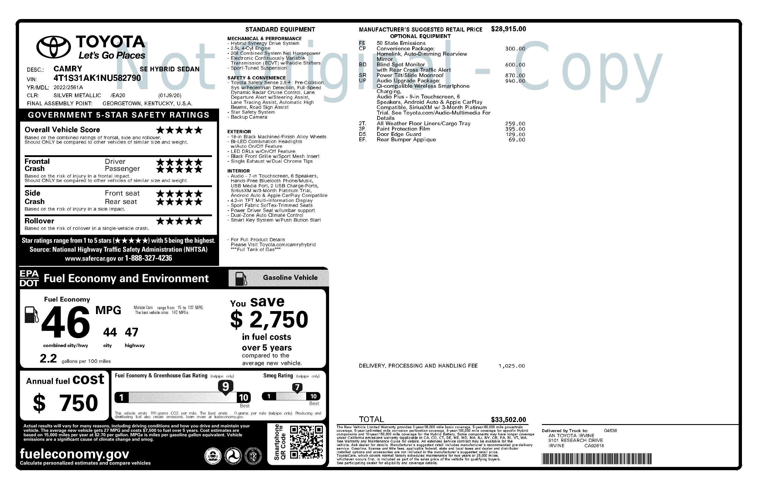 2022 Toyota Camry Hybrid Cvt (Natl)