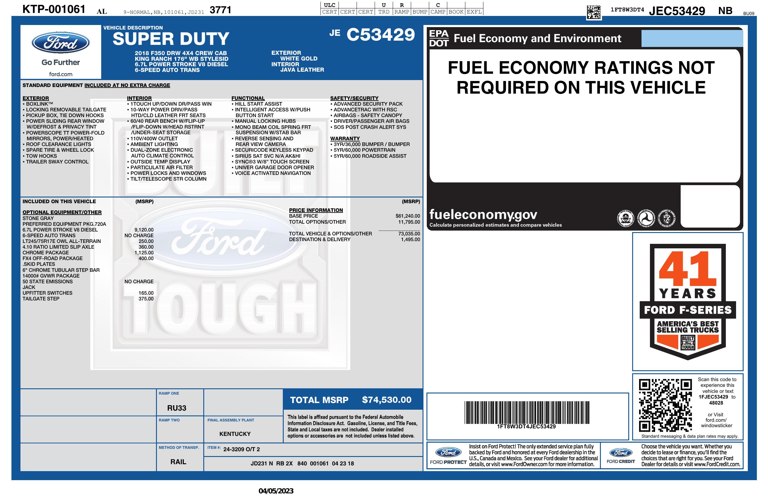 2018 Ford Super Duty F 350 Drw 4 Wd Crew Cab 8' Box