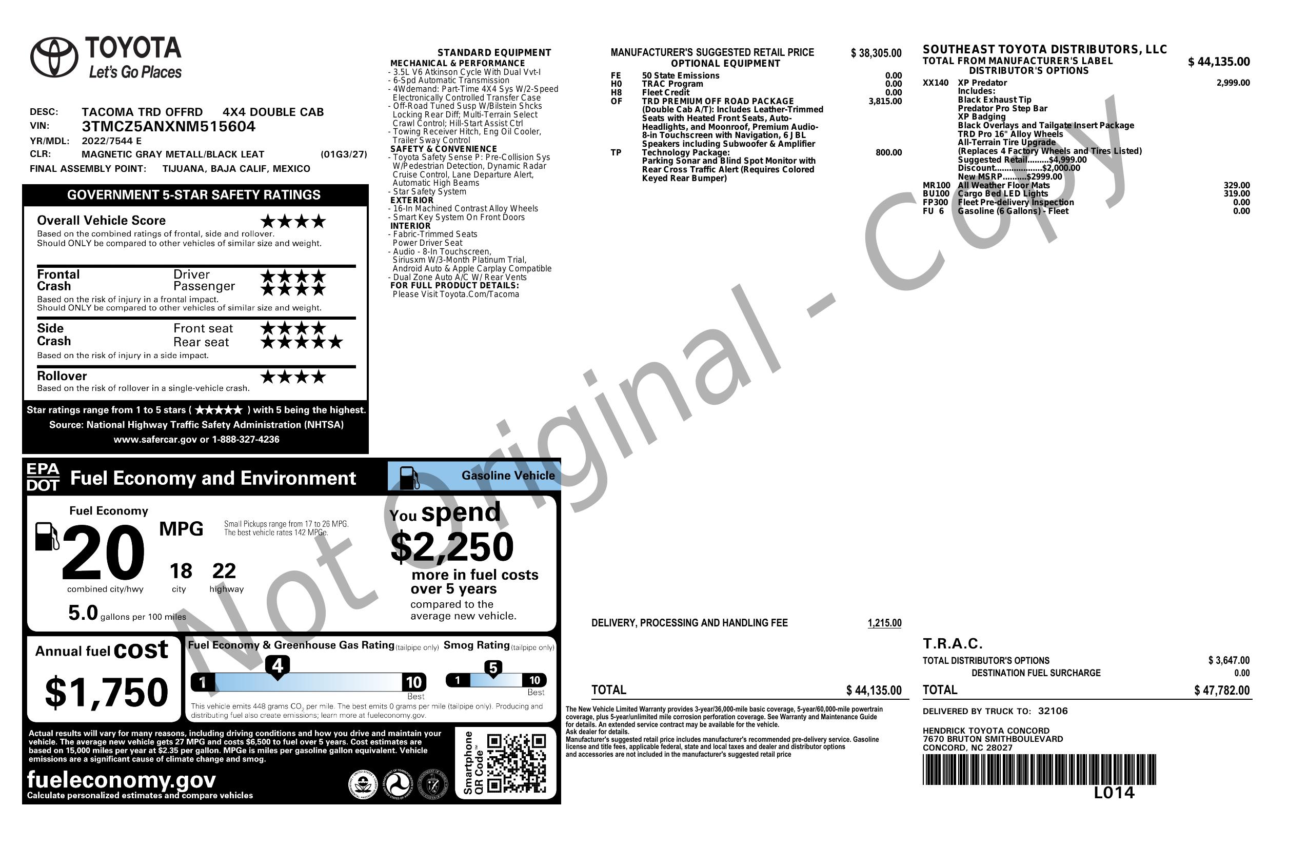 2022 Toyota Tacoma 4 Wd Double Cab 5' Bed V6 (Natl)