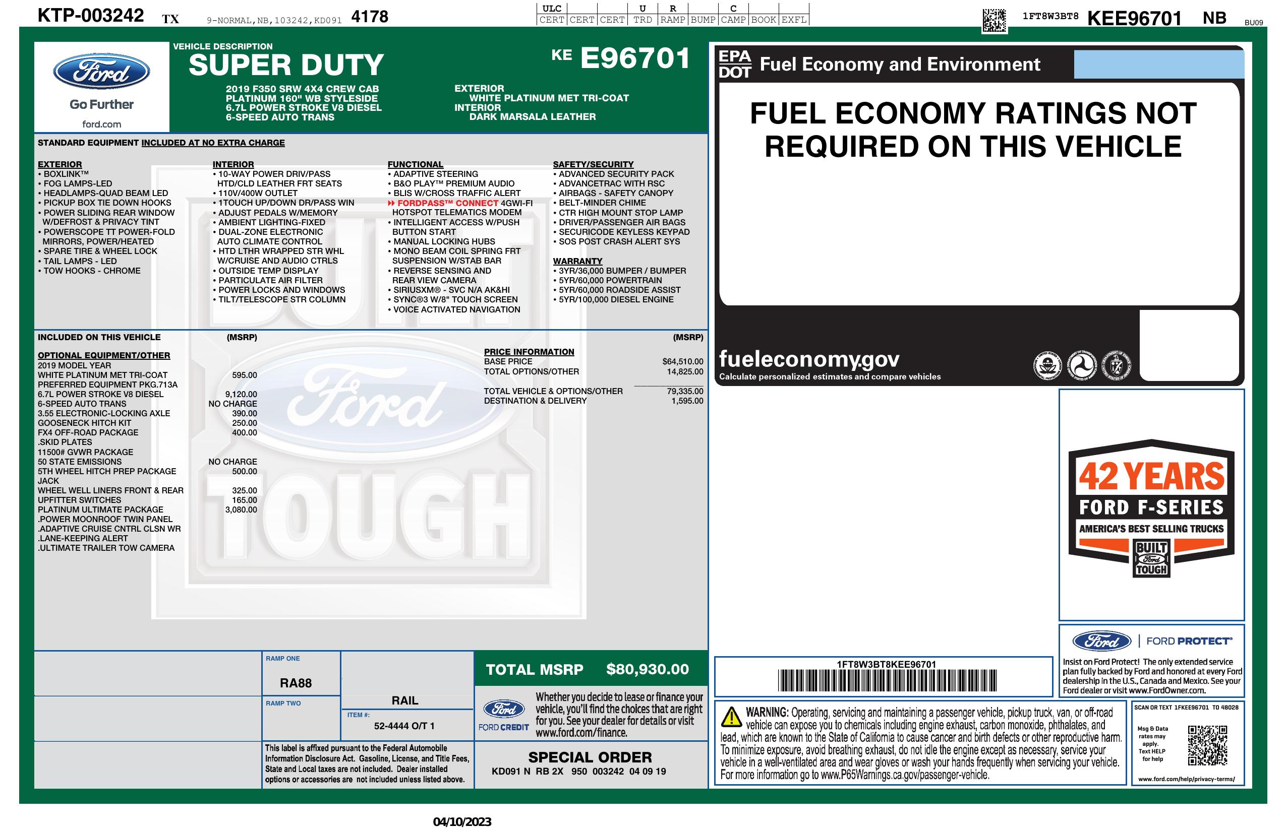 2019 Ford Super Duty F 350 Srw 4 Wd Crew Cab Box
