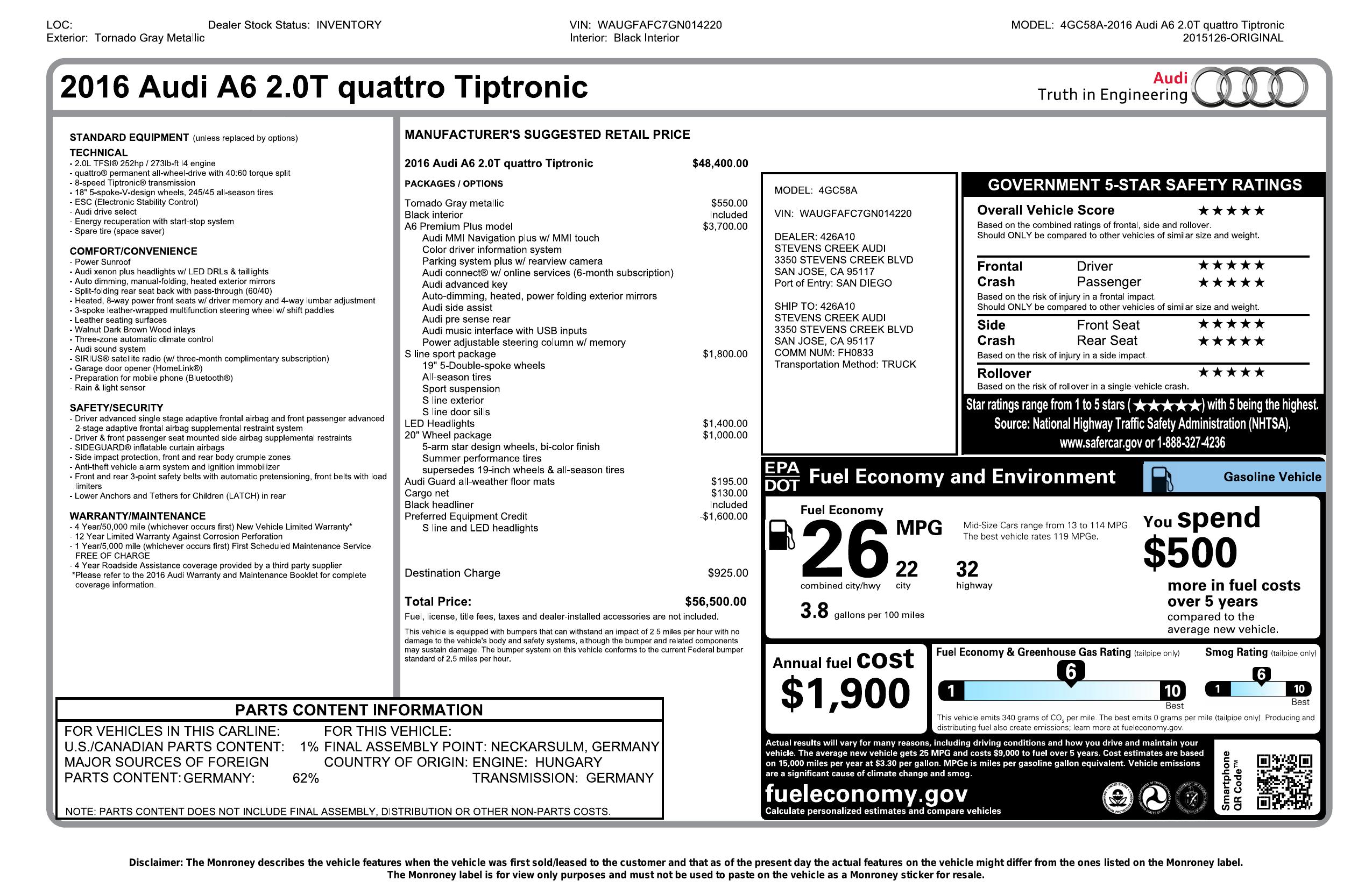 2016 Audi A6 4dr Sdn Quattro 2.0 T Premium Plus