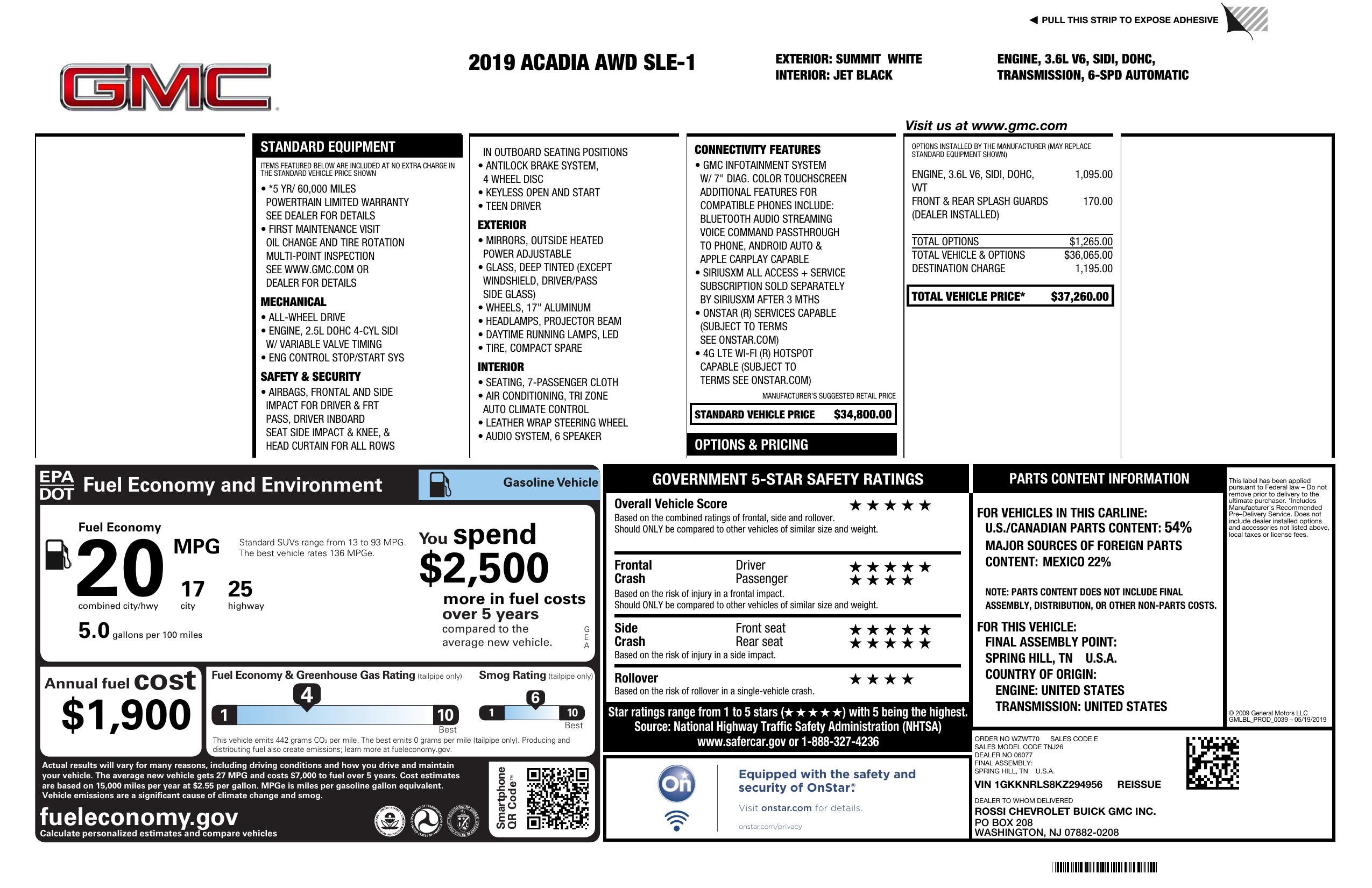 2019 GMC Acadia Awd 4dr Sle W/Sle 1
