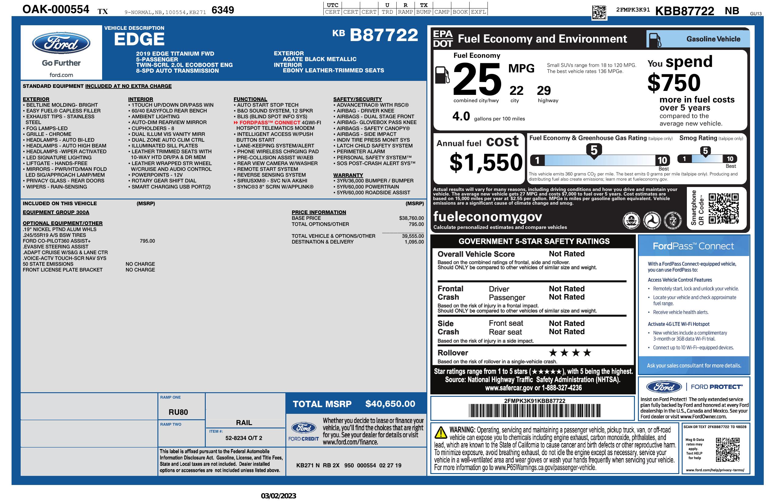 2019 Ford Edge Titanium Fwd