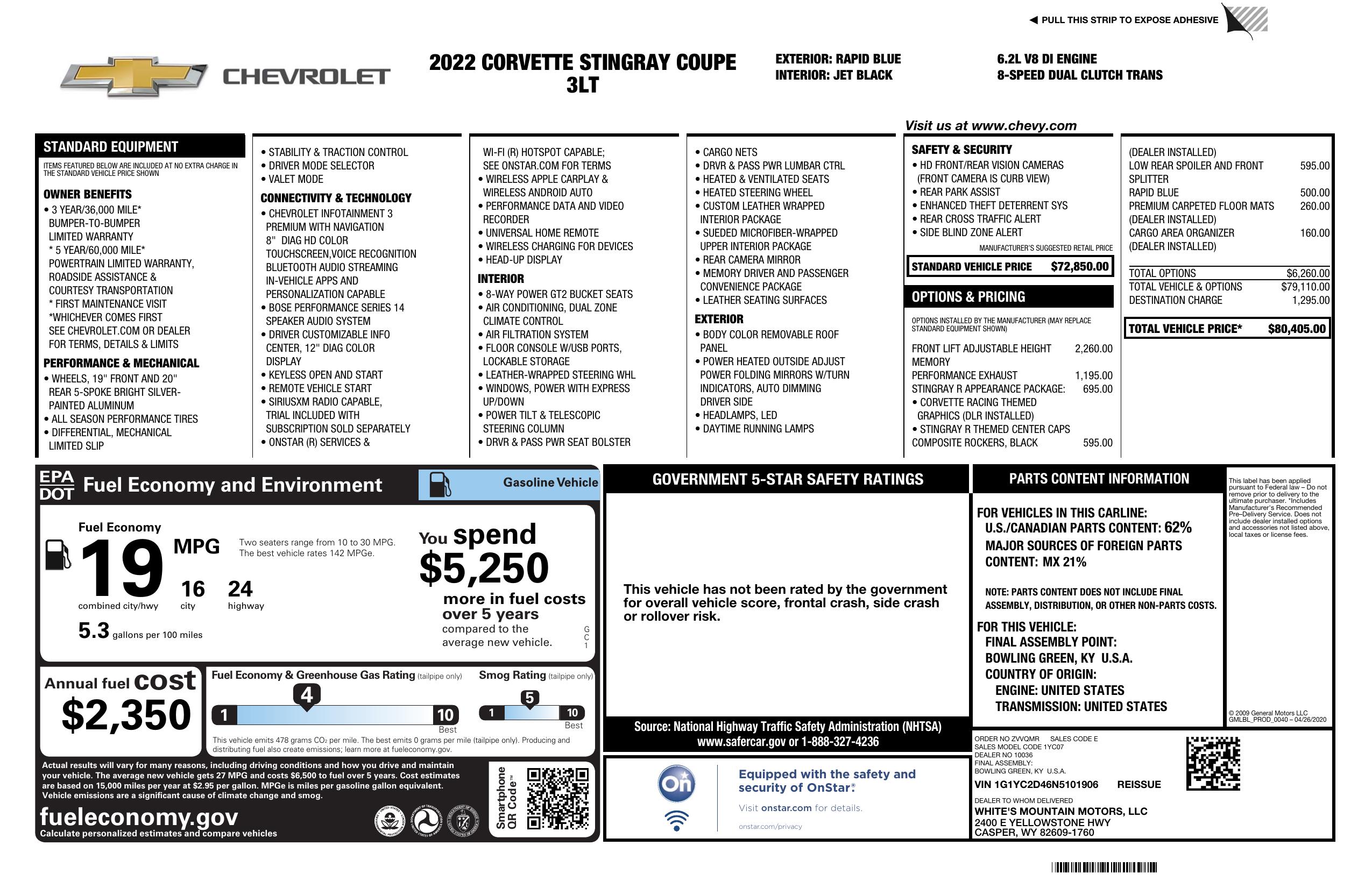 2022 Chevrolet Corvette 2dr Stingray Cpe W/3 Lt
