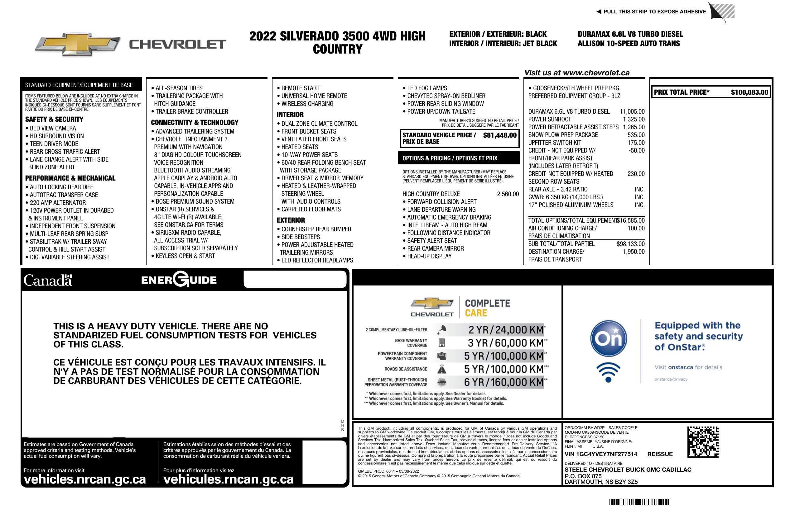 2022 Chevrolet Silverado 3500 Hd 4 Wd Crew Cab High Country