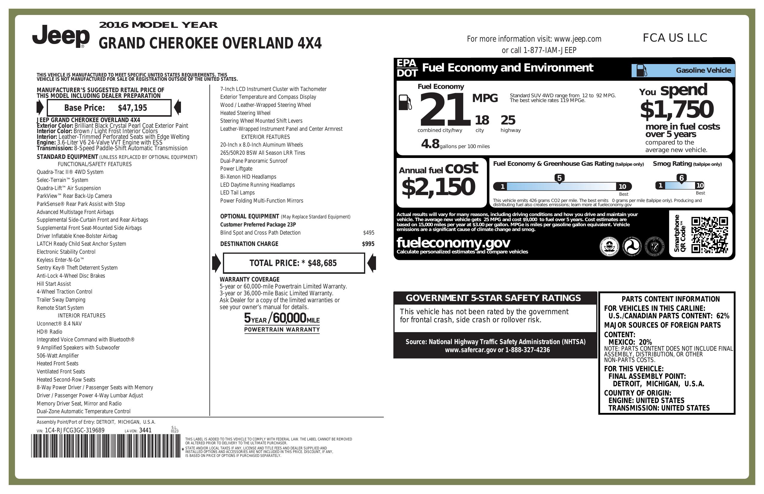 2016 Jeep Grand Cherokee 4 Wd 4dr Overland