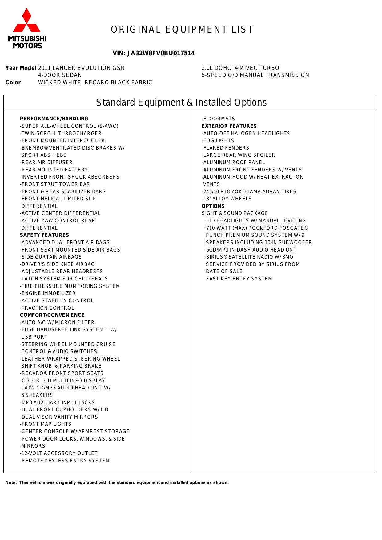 2011 Mitsubishi Lancer 4dr Sdn Man Evolution Gsr Awd