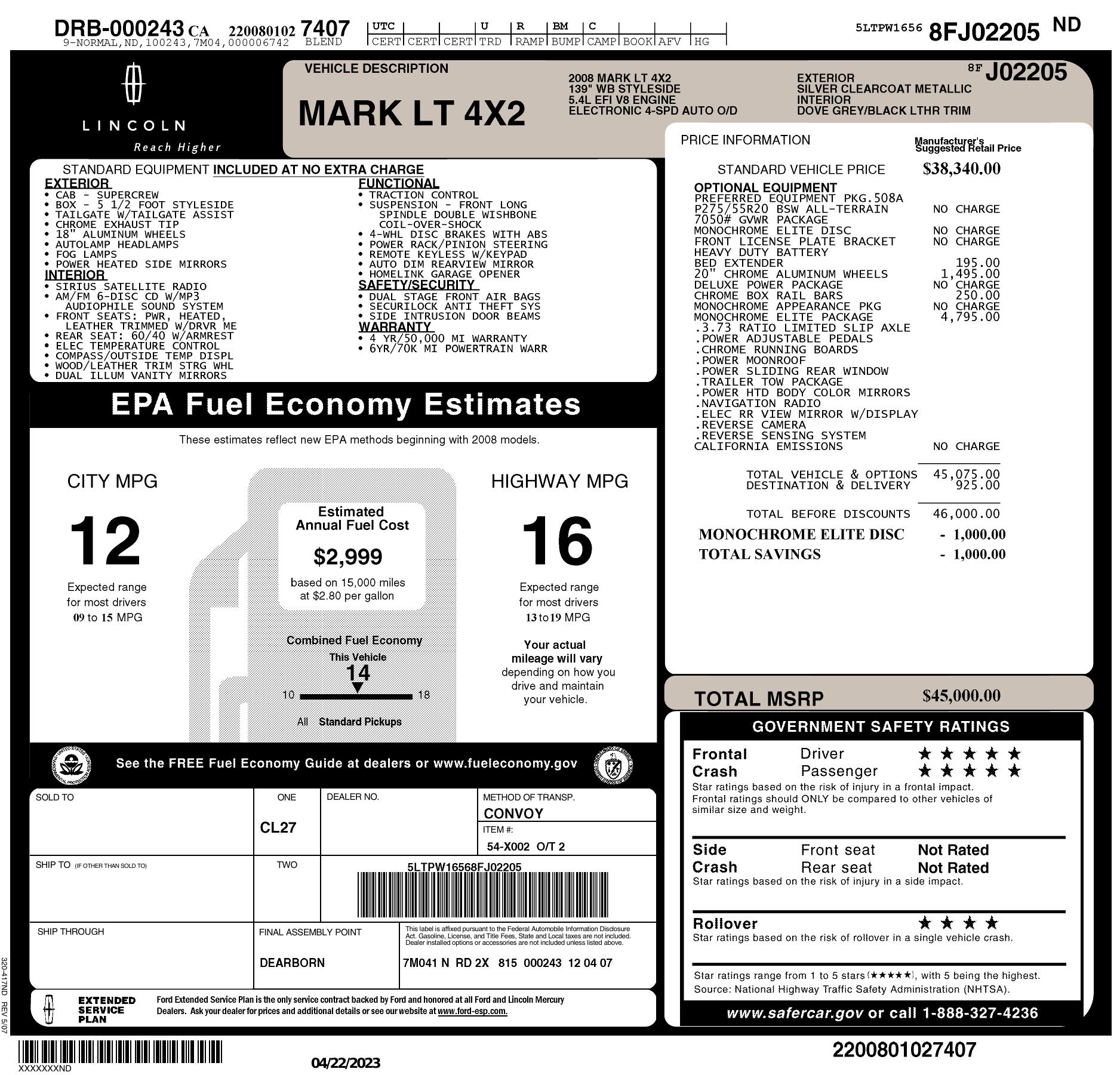 2008 Lincoln Mark Lt 2 Wd Supercrew