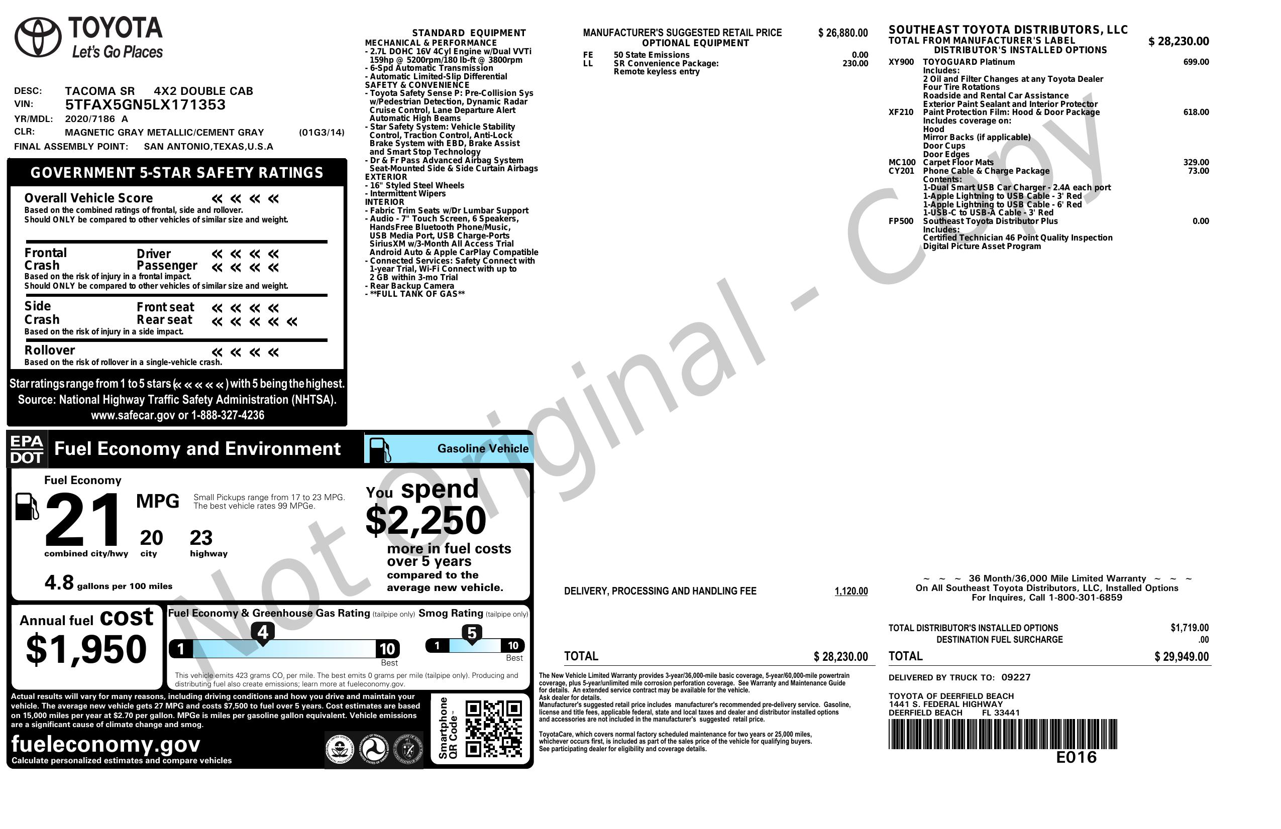 2020 Toyota Tacoma 2 Wd Double Cab 5' Bed I4 At (Natl)