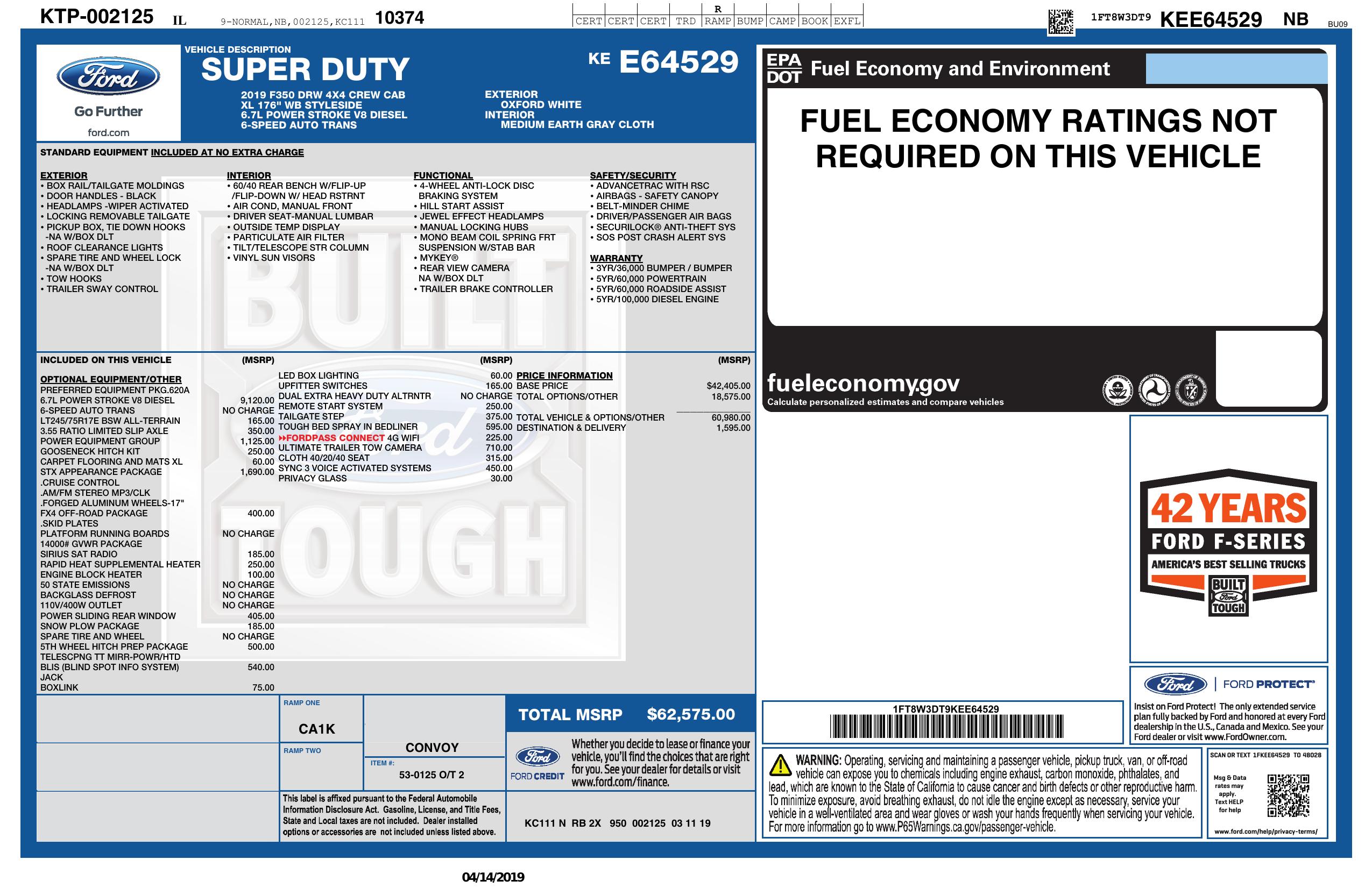 2019 Ford Super Duty F 350 Drw 4 Wd Crew Cab 8' Box