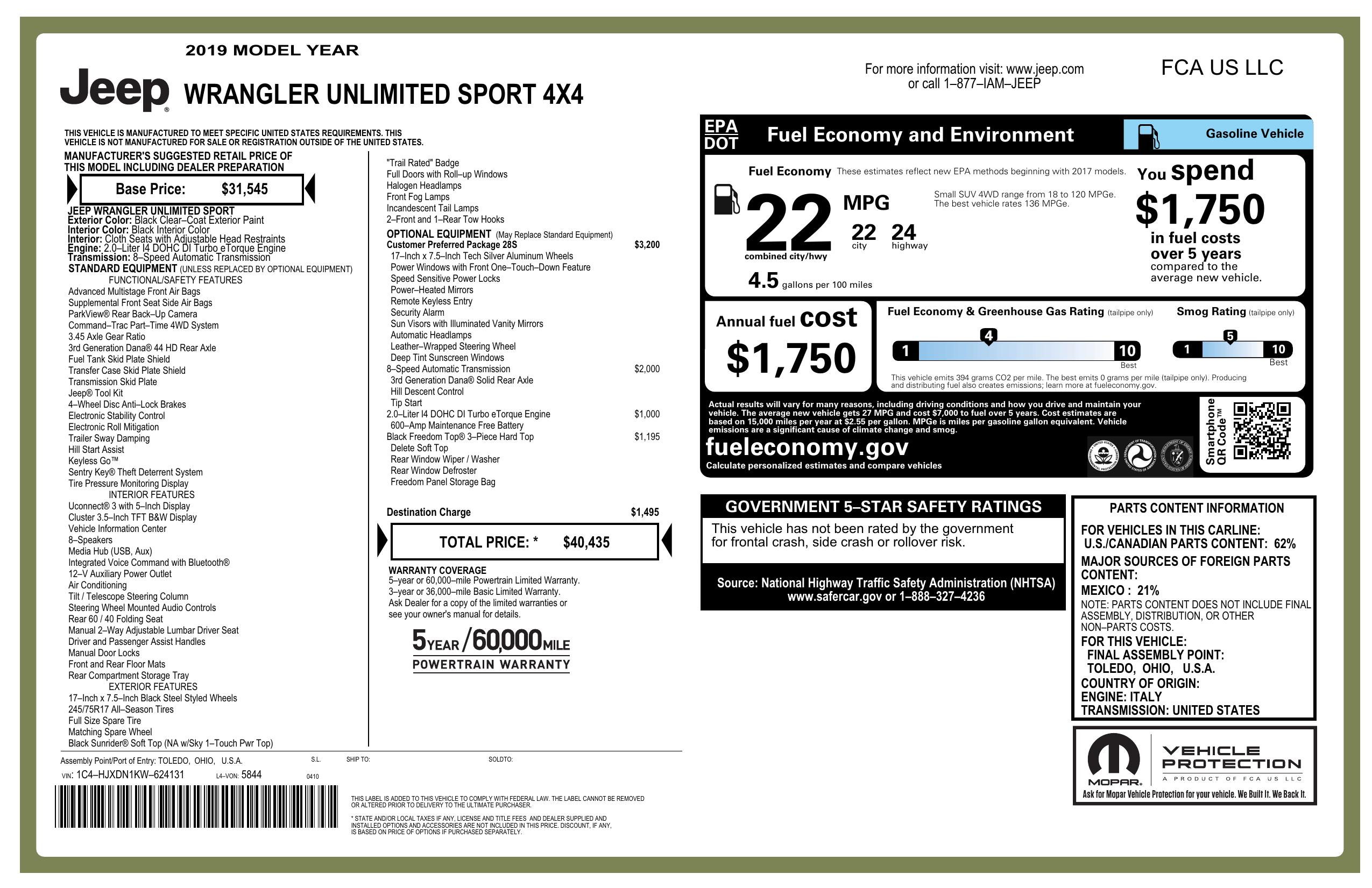 2019 Jeep Wrangler Unlimited Sport S 4x4
